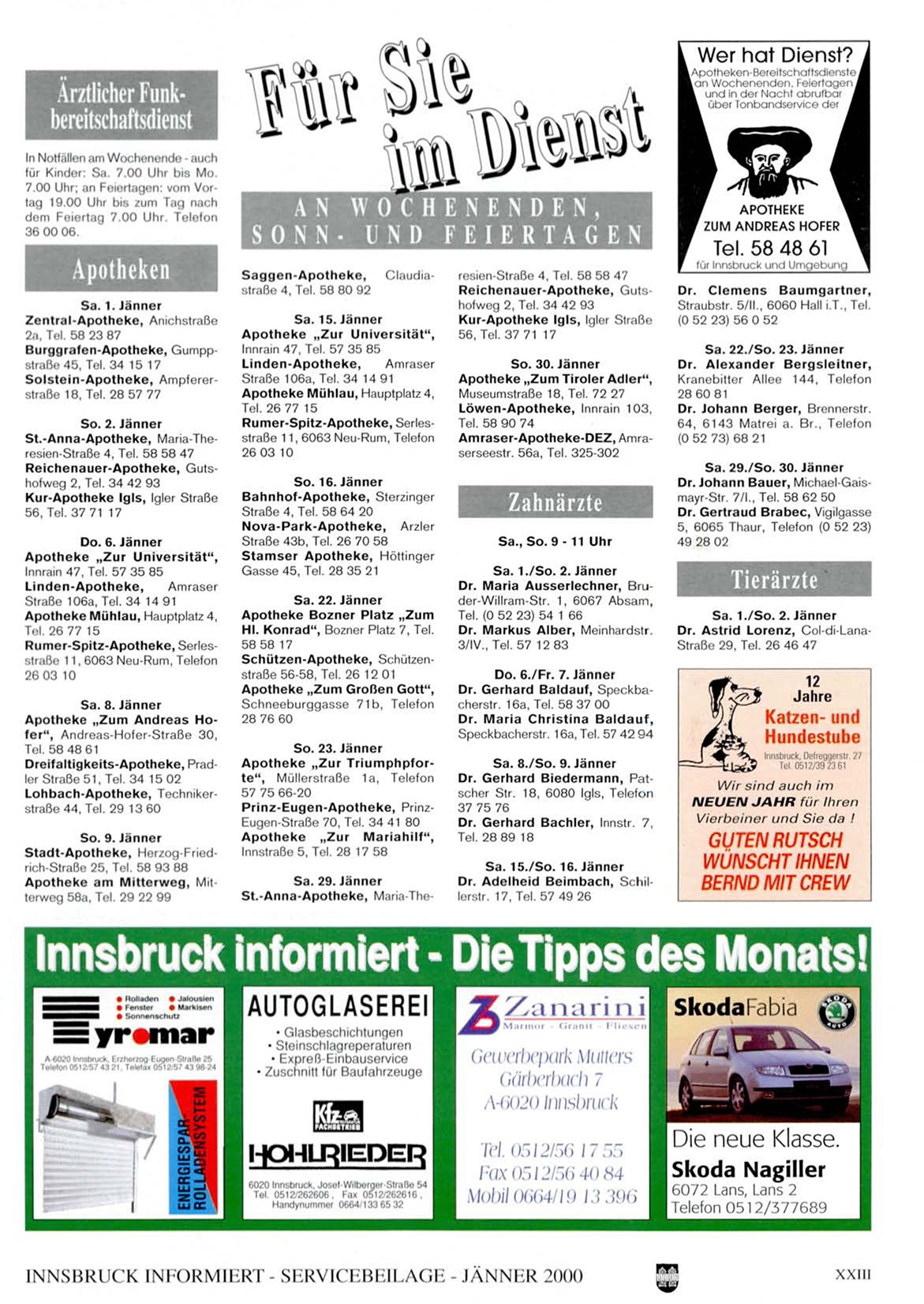 INNSBRUCK INI O K M I 1 R I - SliRVIChBNLAC.I. - JANNUR 2000