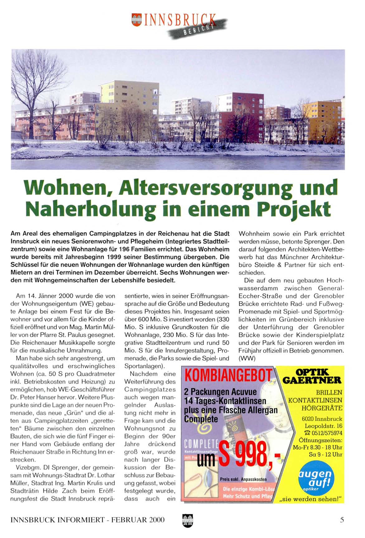 Innsbruck ein neues Seniorenwohn- und Pflegeheim (Integriertes Stadtteilzentrum) sowie eine Wohnanlage für 196 Familien errichtet. Das Wohnheim
