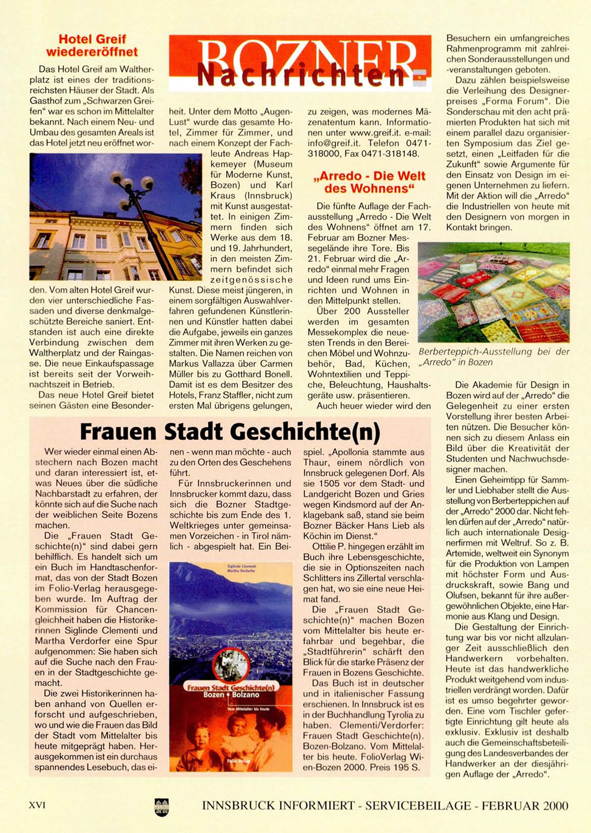ter bis heute. FolioVerlag WiHandwerke» an der diesjährien-Bozen 2000. Preis 195 S.