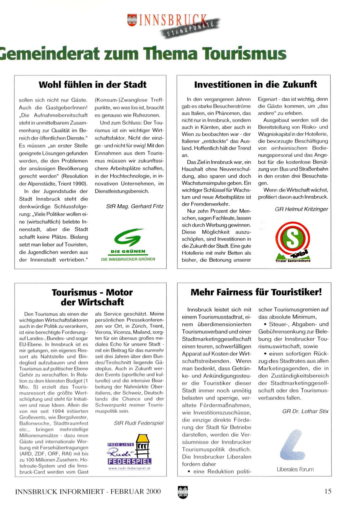 seit drei Jahren über dem Bundes/Tirolschnitt liegende Gästeplus. Auch in Zukunft werden Events (sportliche und kulturelle) und die intensive Bearbeitung der Nahmärkte Oberitaliens, der Schweiz, Deutschlands die Chance und der