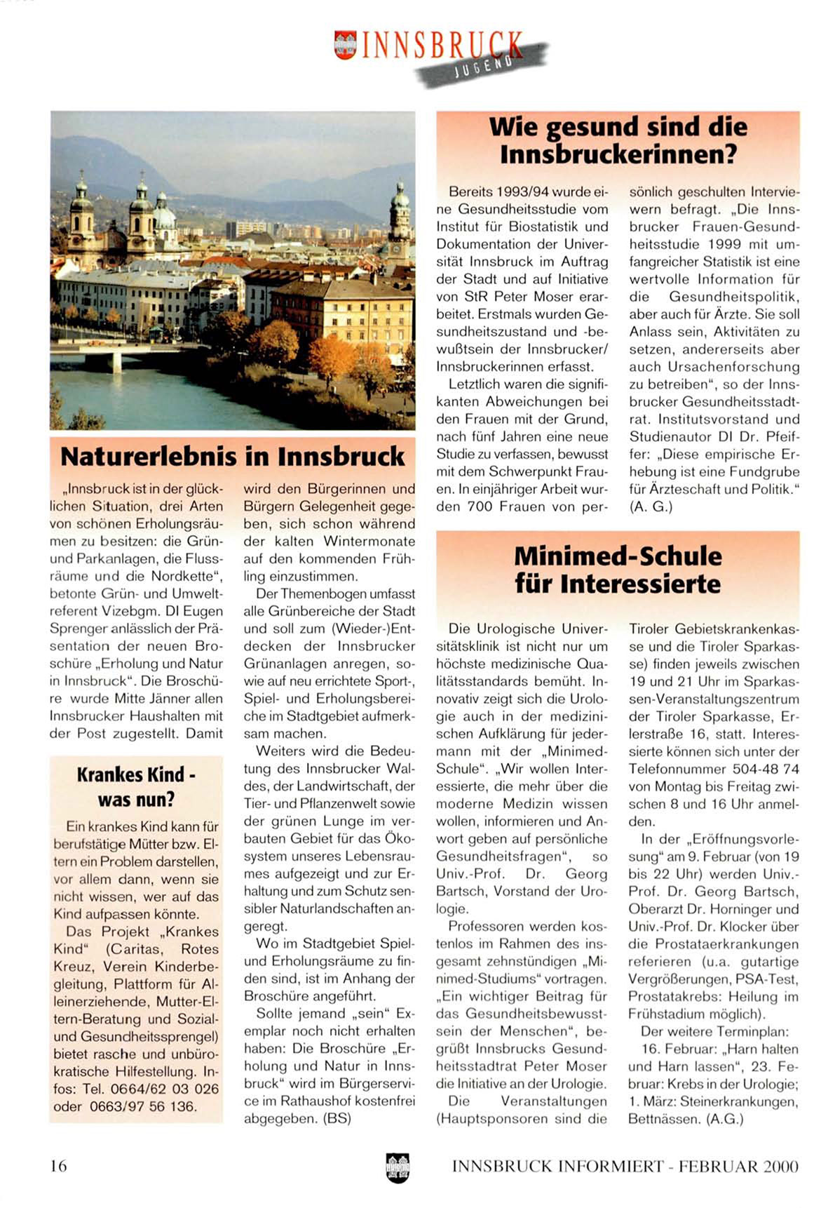 von StR Peter Moser erarbeitet. Erstmals wurden Gesundheitszustand und -bewußtsein der Innsbrucker/