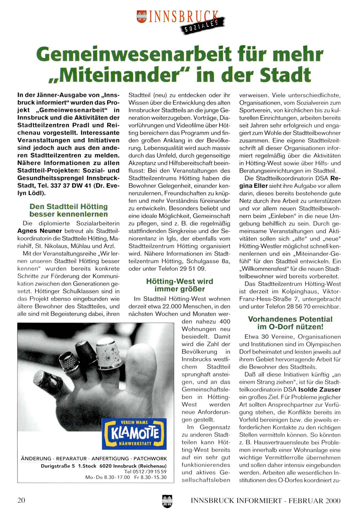 In der Jänner-Ausgabe von „Innsbruck informiert" wurden das Projekt „Gemeinwesenarbeit" in