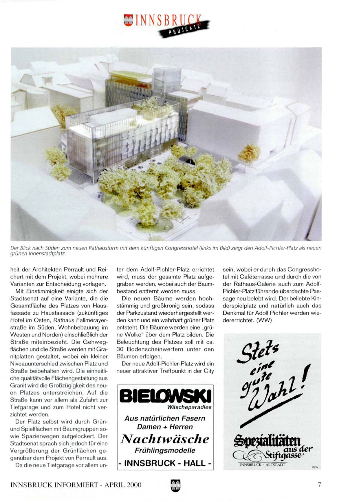der Rathaus-Galerie auch zum AdolfPichler-Platz führende überdachte Passage neu belebt w i r d . Der beliebte Kinderspielplatz und natürlich auch d a s