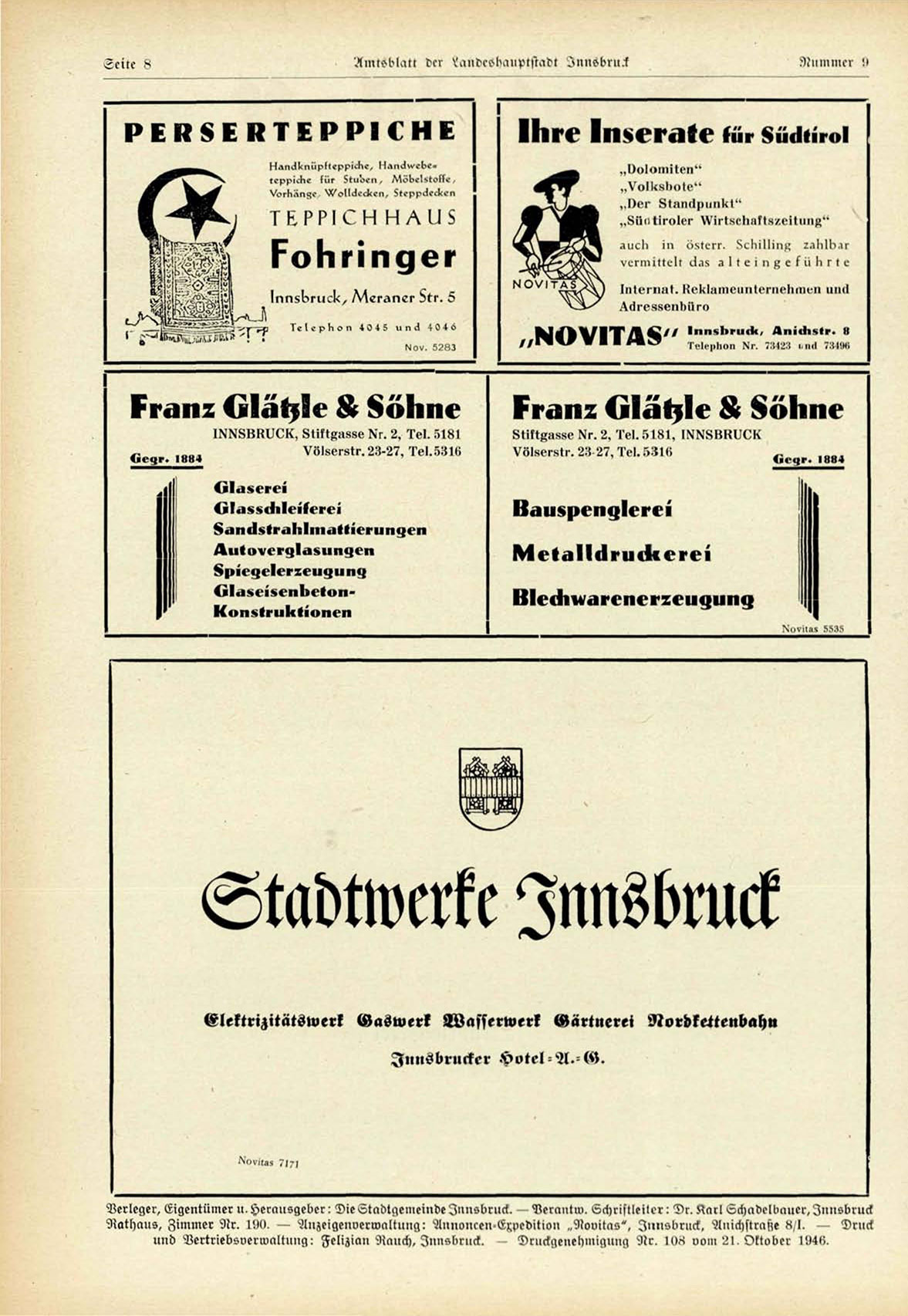 Verleger, Eigentümer li,Hel"Ml9godl,"l^ Die^5tai)t^e!noinde Innsdruä, V?rm>!w, ^chris!Il>i!»,"r " Dr, >xnl l ^chad^Ilnnl^r, Zii