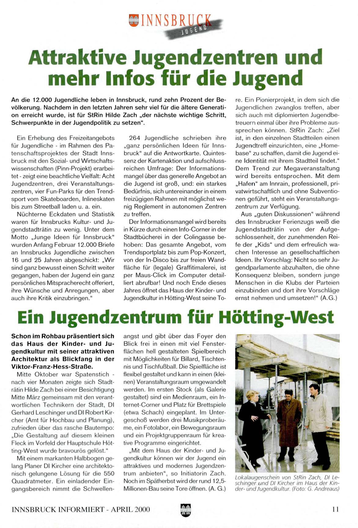 füi Jugendliche - im Rahmen des Patenschaftsprojektes der Stadt Innsbruck mit den Sozial- und Wirtschaftswissenschaften (Pinn-Projekt) erarbeitet - zeigt eine beachtliche Vielfalt: Acht