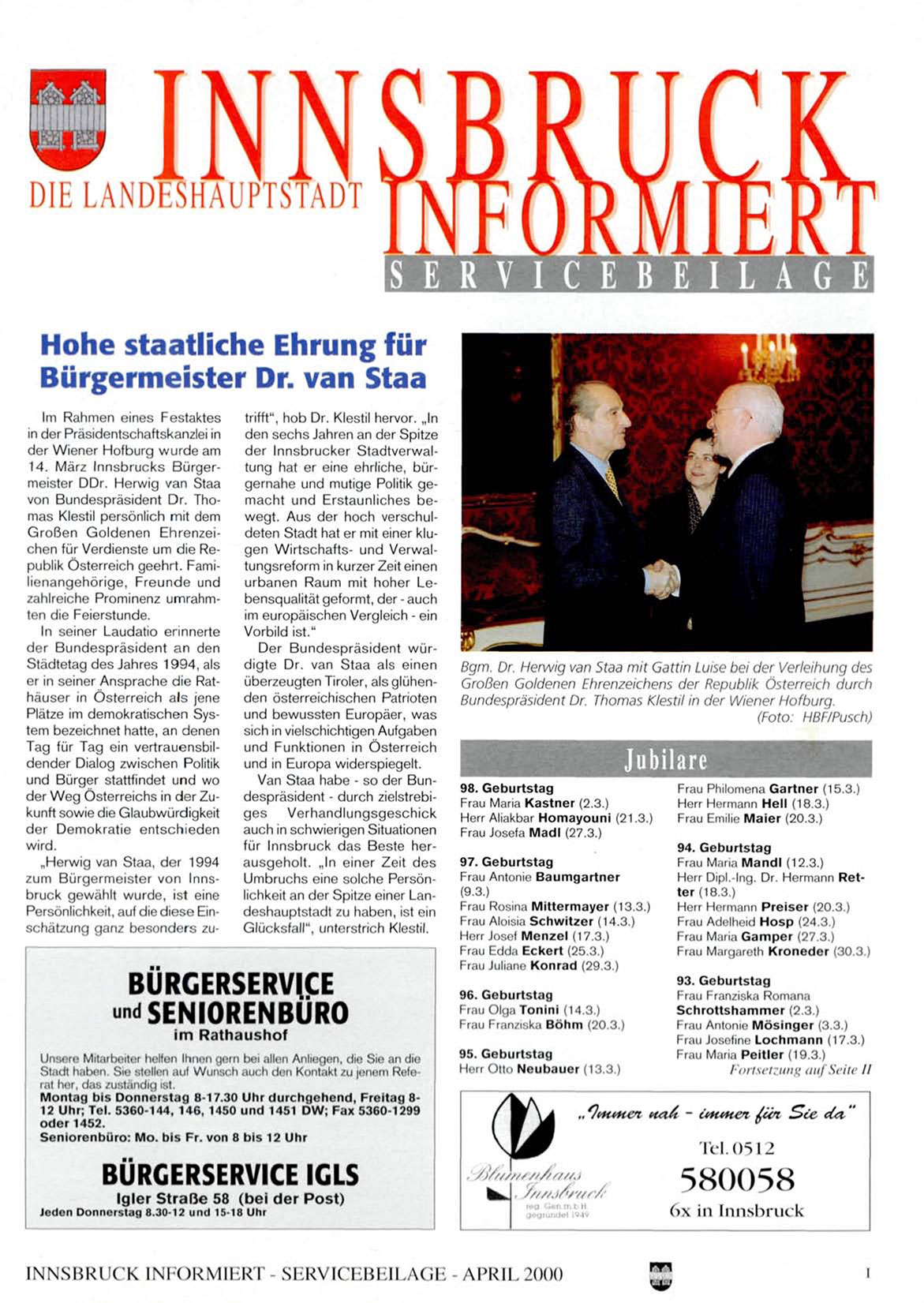 14. März Innsbrucks Bürgermeister DDr. Herwig van Staa