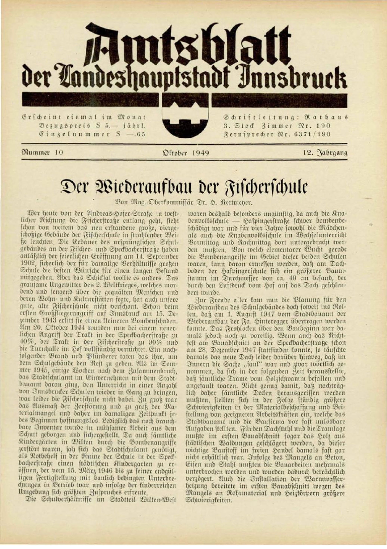 den Unterricht in einer Anzahl von Innsbrucker Schulen wieder in Gang zu bringen, war leider die Fischerschule nicht dabei. Zu groß war das Ausmaß der Zerstörung und zu groß der Materialmangel und daher im