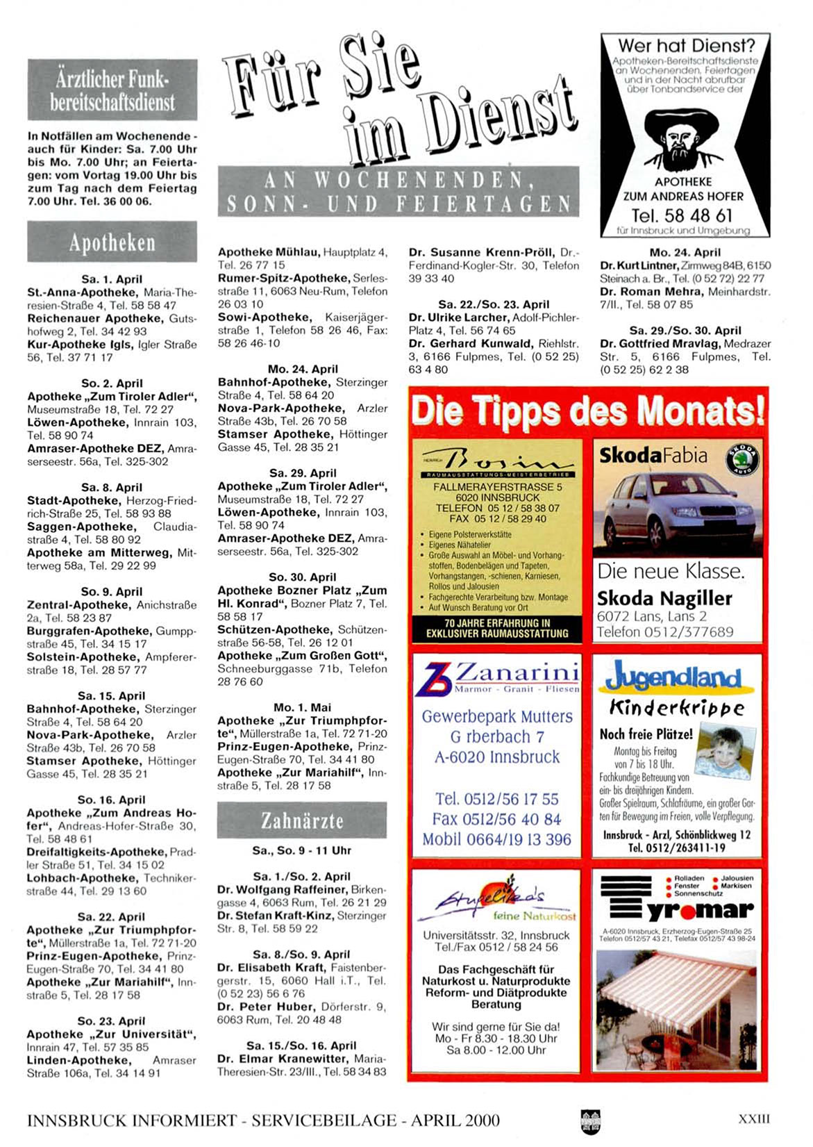 Dr. U l r i k e Larcher, Adolf-PichlerPlatz 4, Tel. 56 74 65
