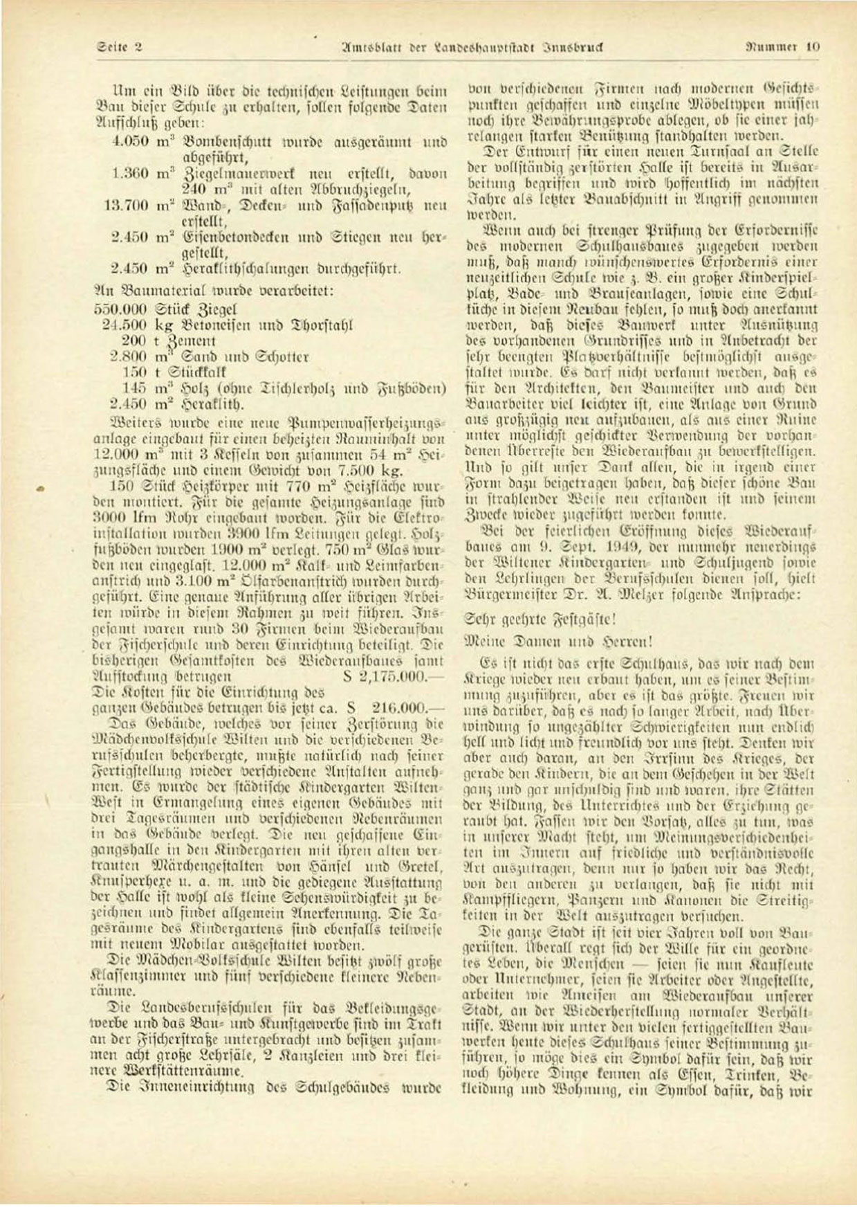 Das Gebäude, welches vor seiner Zerstörung die Mädchenvolksschule Wilten und die verschiedenen Berufsschulen beherbergte, mußte natürlich nach seiner Fertigstellung wieder verschiedene Anstalten aufneh men.