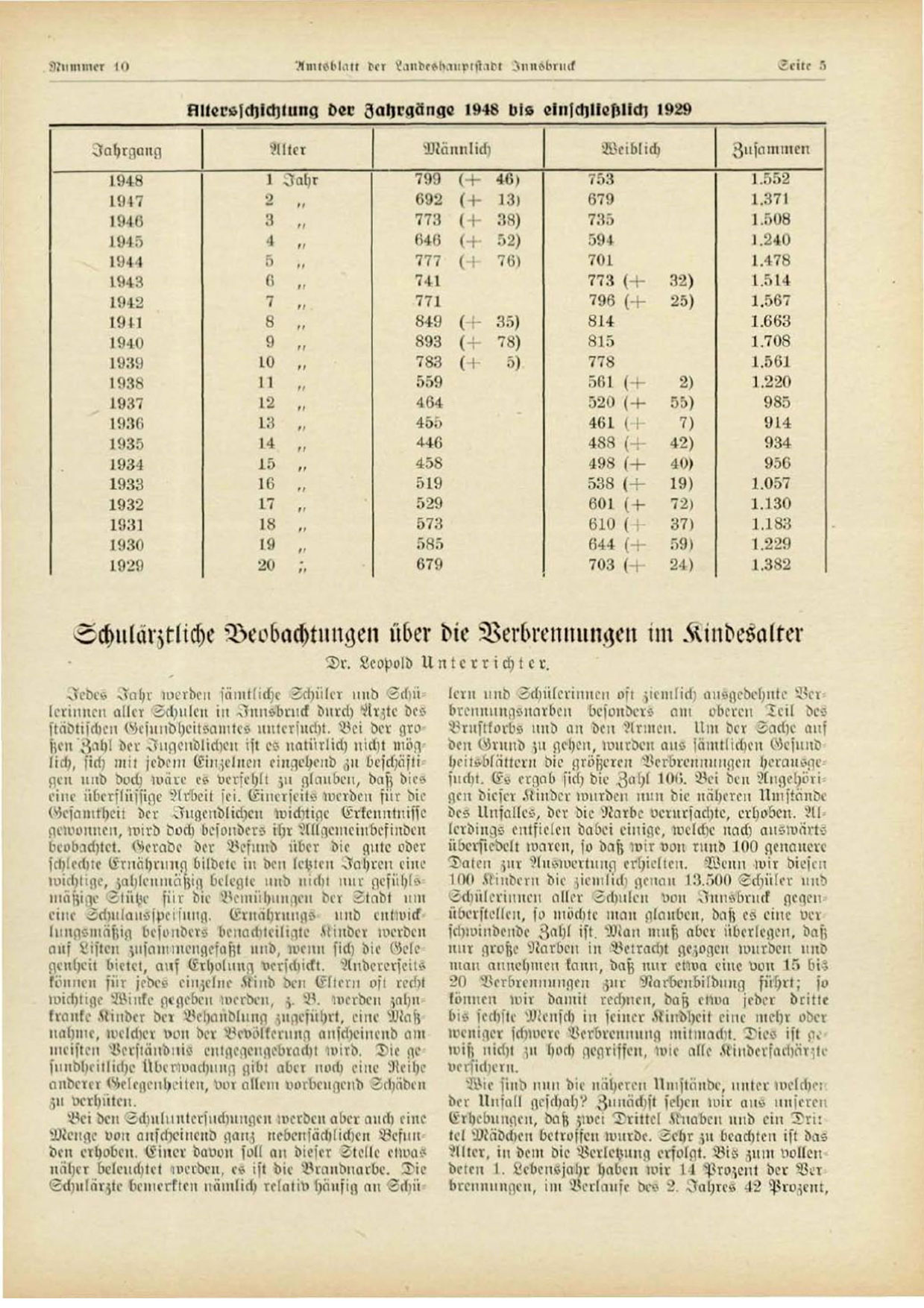 Schulärztliche Beobachtungen über die Verbrennungen im Kindesalter
