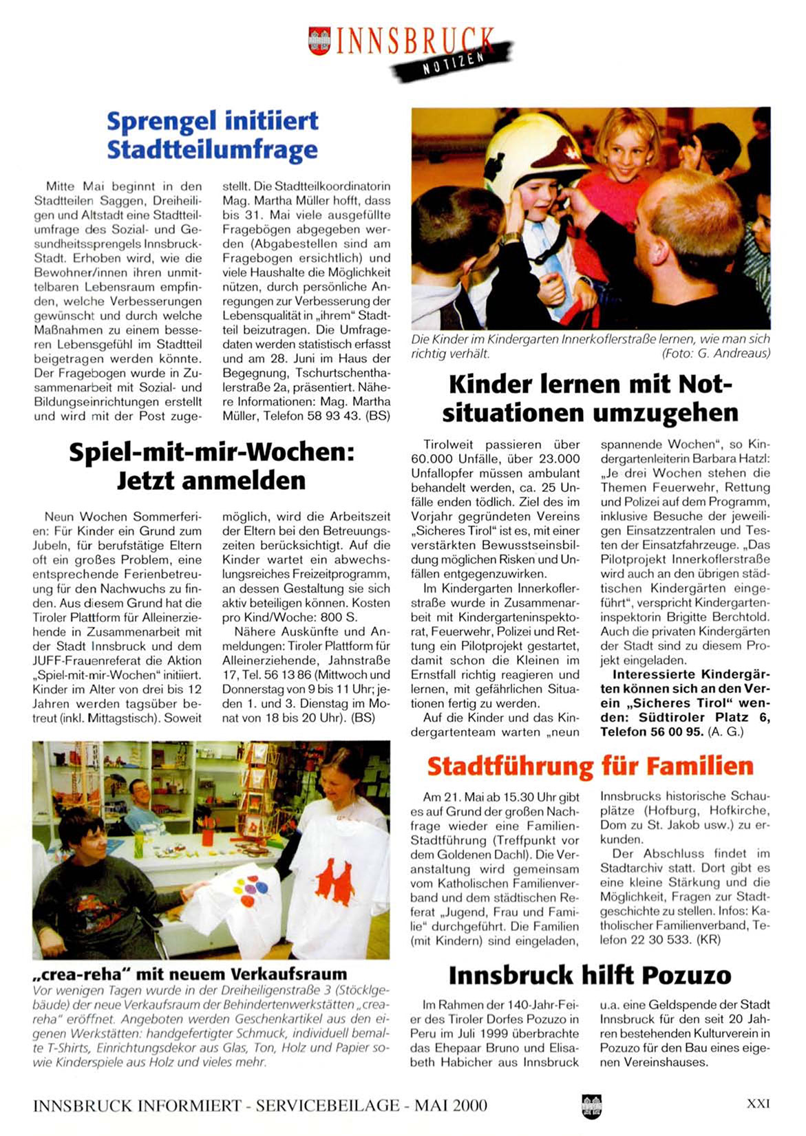 Im Kindergarten Innerkoflerstraße wurde in Zusammenarbeit mit Kindergarteninspektorat, Feuerwehr, Polizei und Rettung ein Pilotprojekt gestartet,