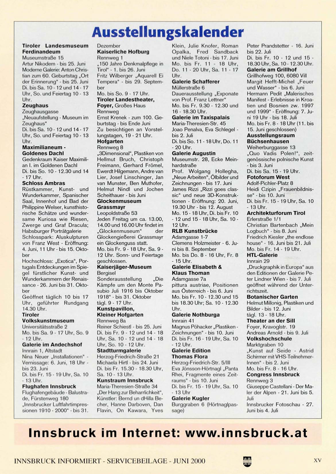 und 1999" - Eröffnung: 7. Juni 19 Uhr -bis 18. Juli