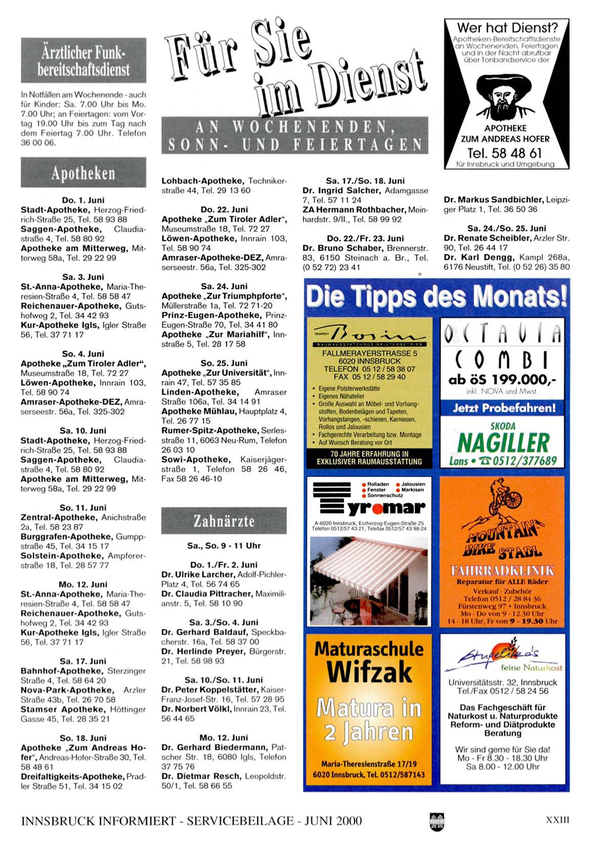 INNSBRl ICK INFORMIERT - SERVICEBEILAGE - JUNI 2000