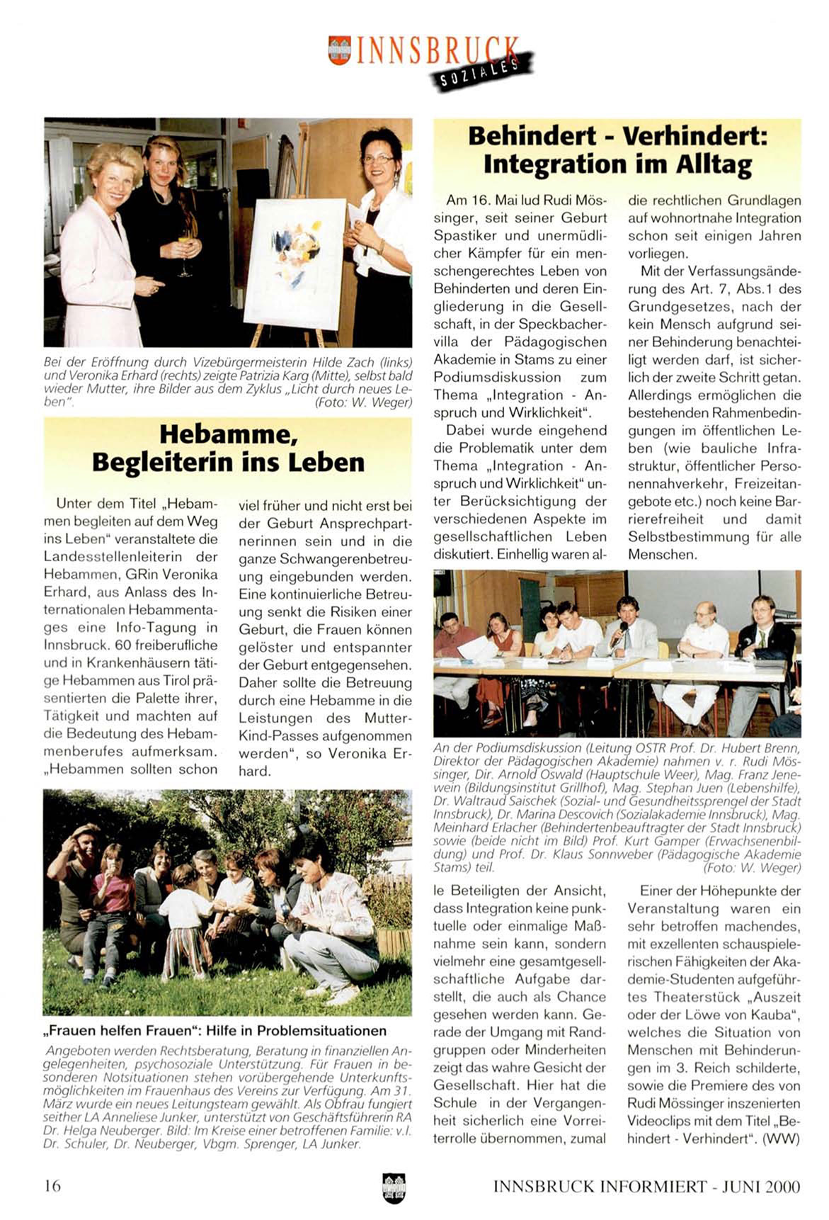 Behinderten und deren Eingliederung in die Gesellschaft, in der Speckbachervilla der Pädagogischen