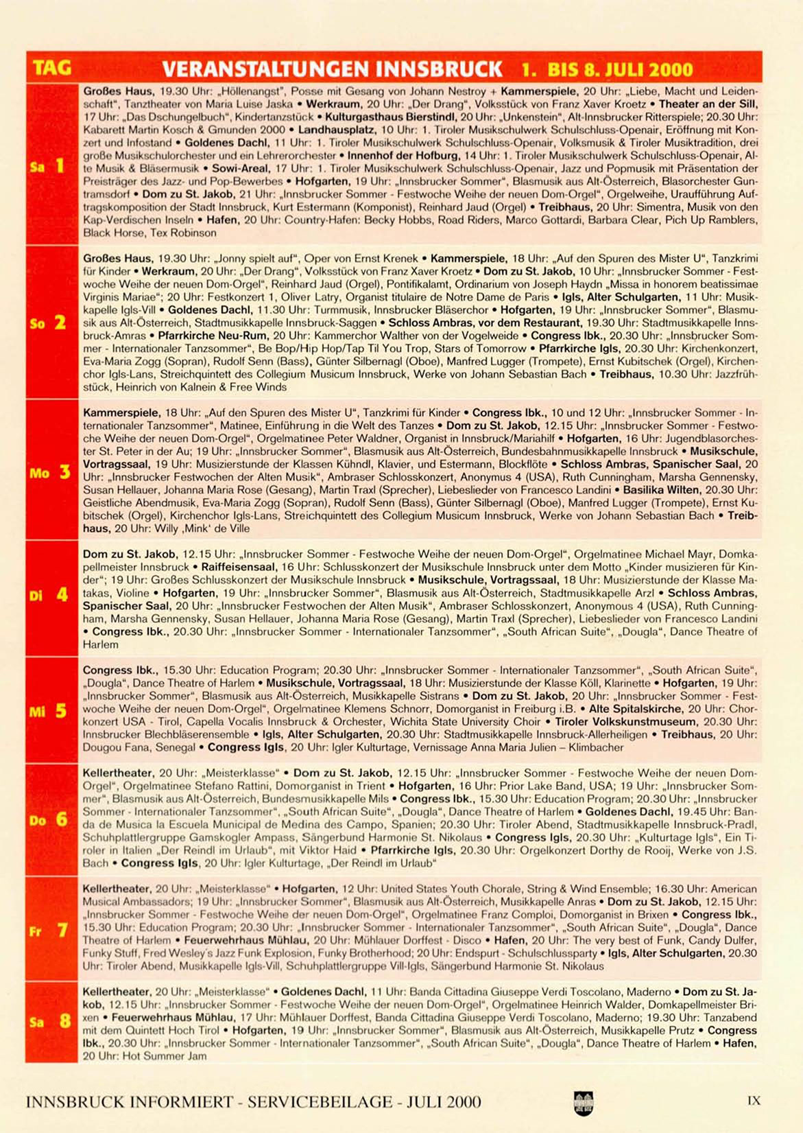 VERANSTALTUNGEN INNSBRUCK 1. BIS 8. JULI 2000