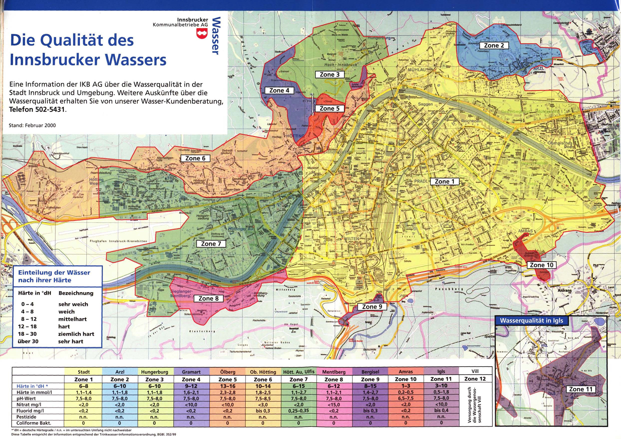 Diese Tabelle entspricht der Information entsprechend der Trinkwasser-Informationsverordnung, BGBl. 352/99
