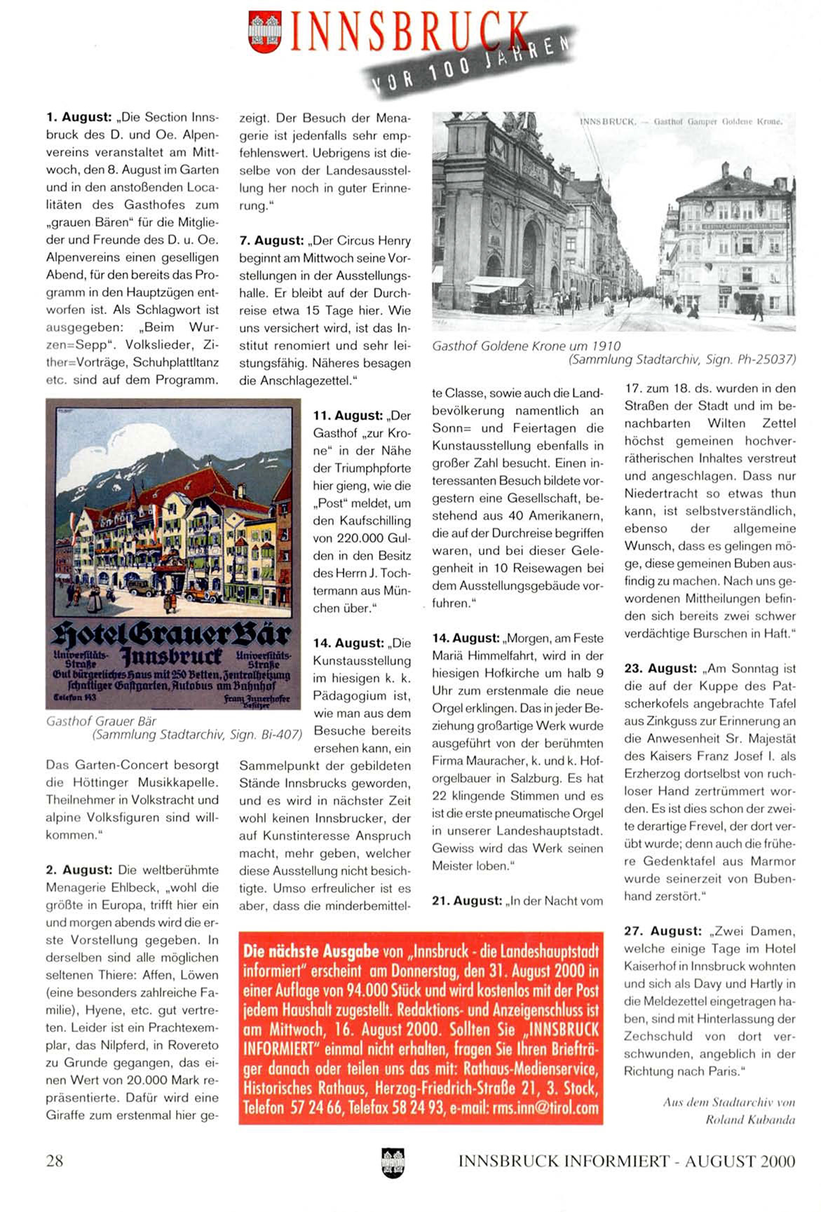 INNSBRUCK INIORMIHRT - AUGUST 2000