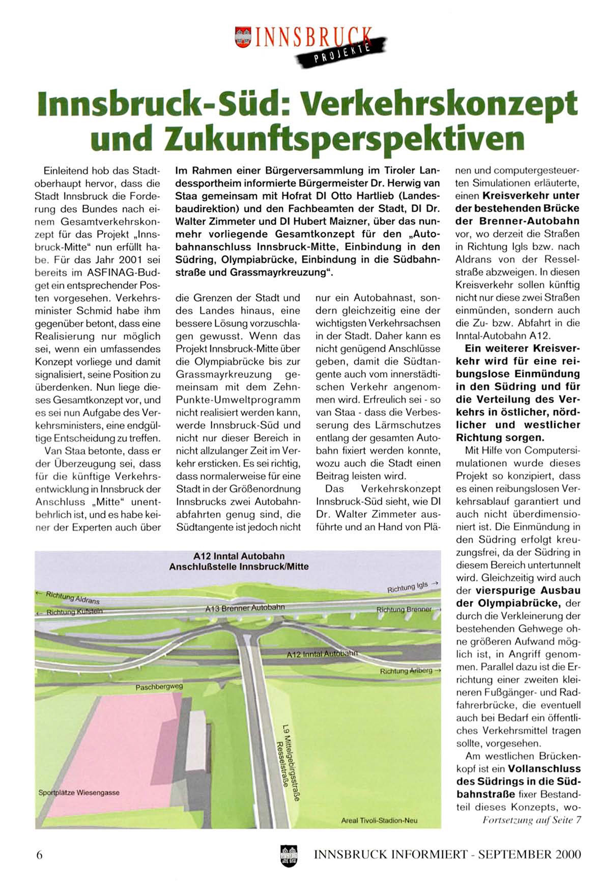 Stadt Innsbruck die Forderung des Bundes nach einem Gesamtverkehrskon/c[)! für das Projekt „Innsbruck-Mitte" nun erfüllt habe. Für das Jahr 2001 sei