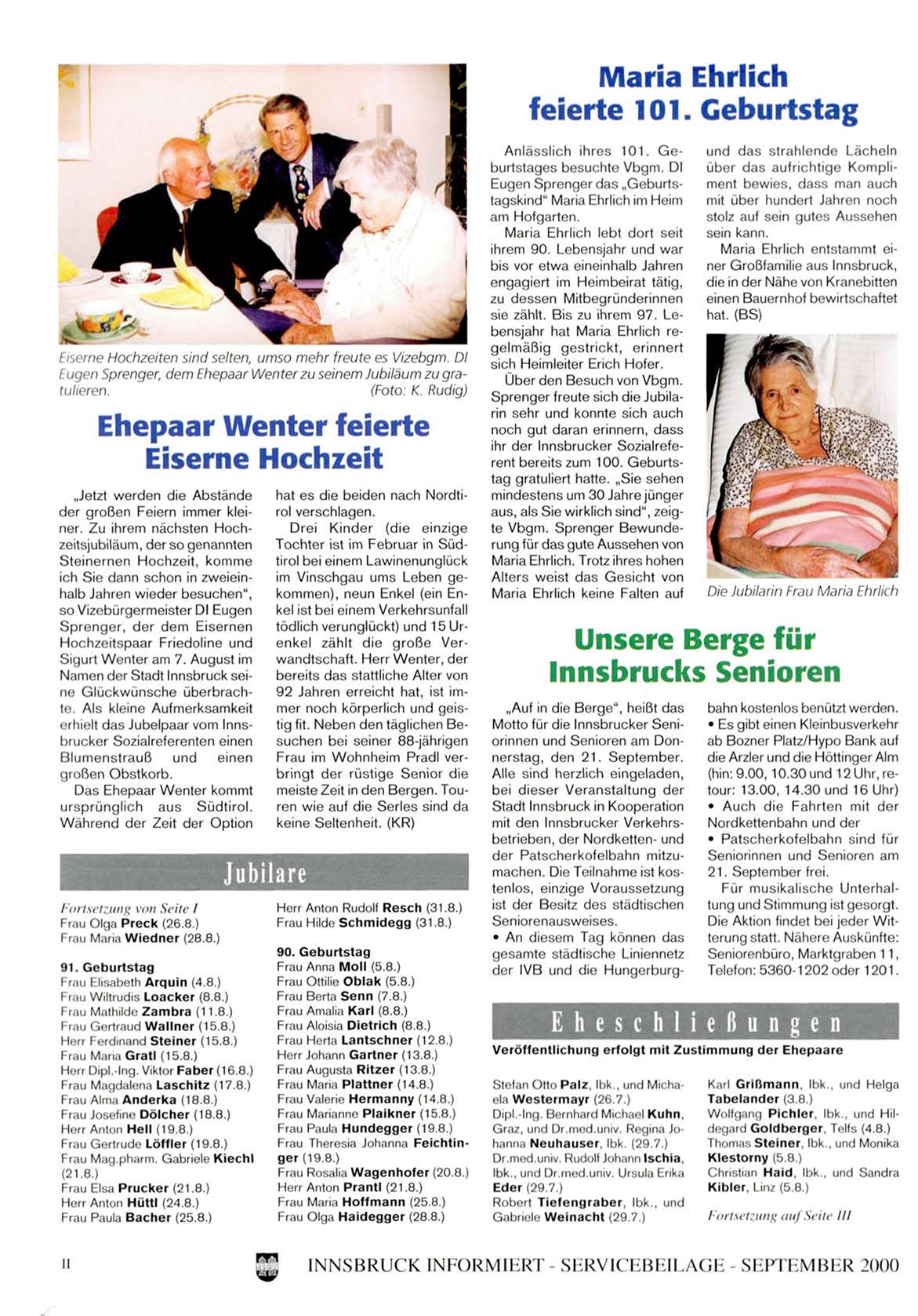 ihr der Innsbrucker Sozialreferent bereits zum 100. Geburtstag gratuliert hatte. „Sie sehen