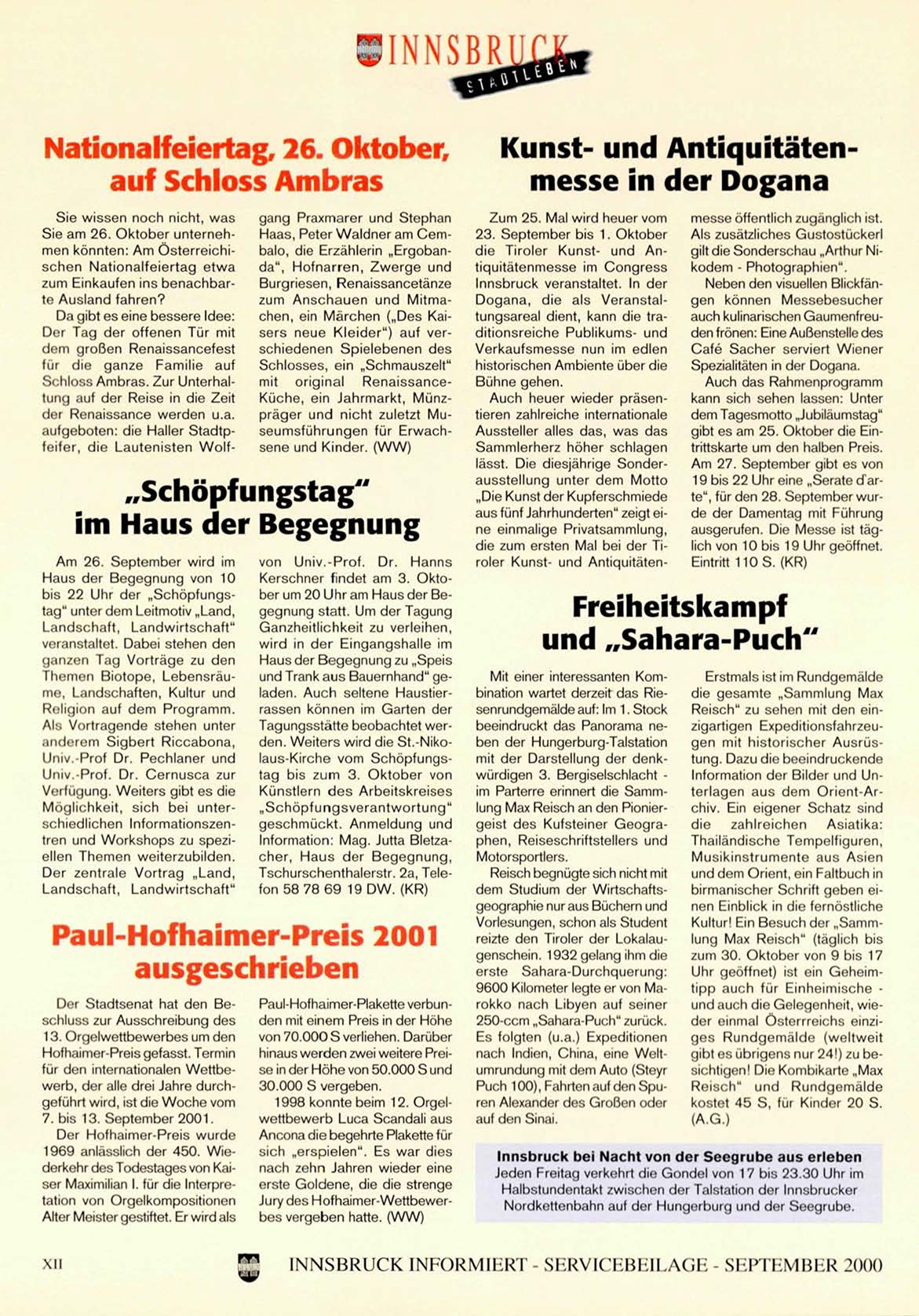1969 anlässlich der 450. Wiederkehr des Todestages von Kaiser Maximilian I. für die Interpretation von Orgelkompositionen