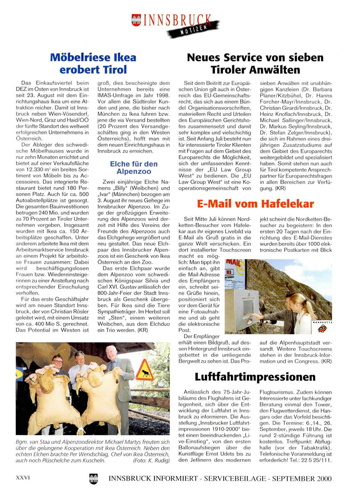 800-Jahr-Feier der Stadt Innsbruck als Geschenk übergeben. Für Ikea sind die Tiere
