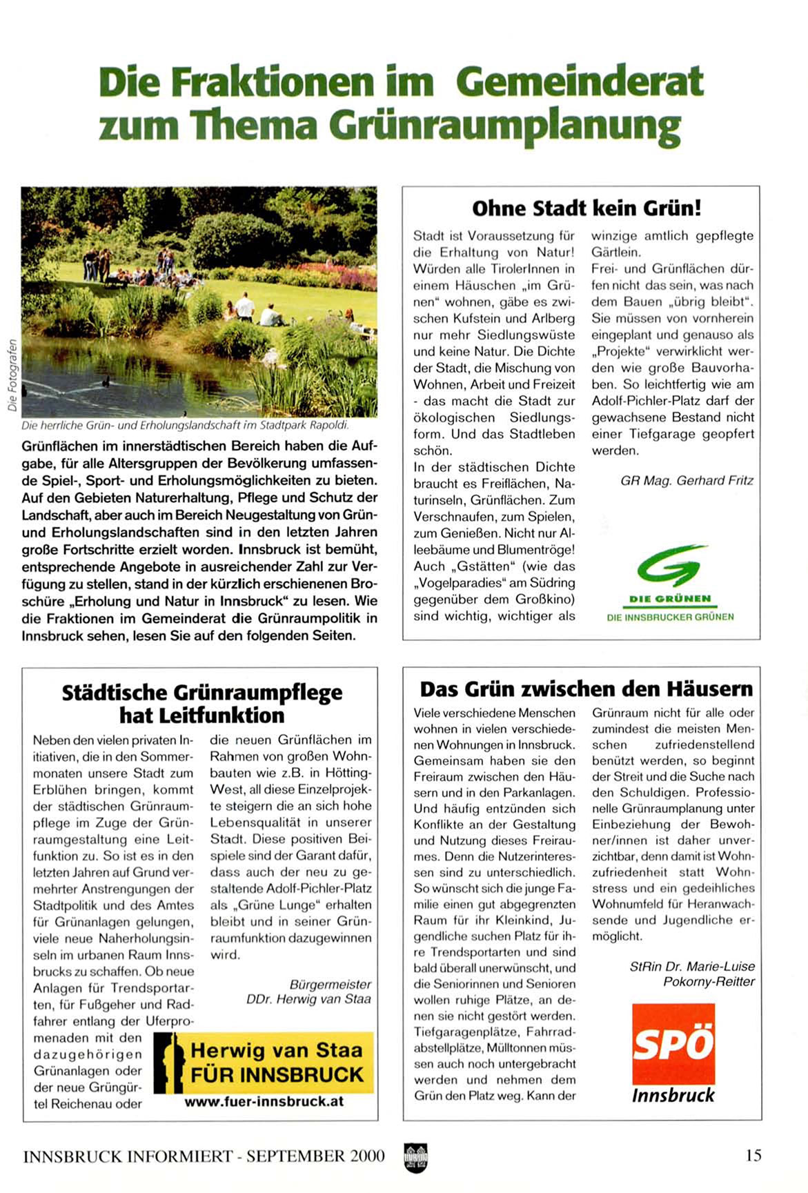die F r a k t i o n e n i m G e m e i n d e r a t d i e G r ü n r a u m p o l i t i k in