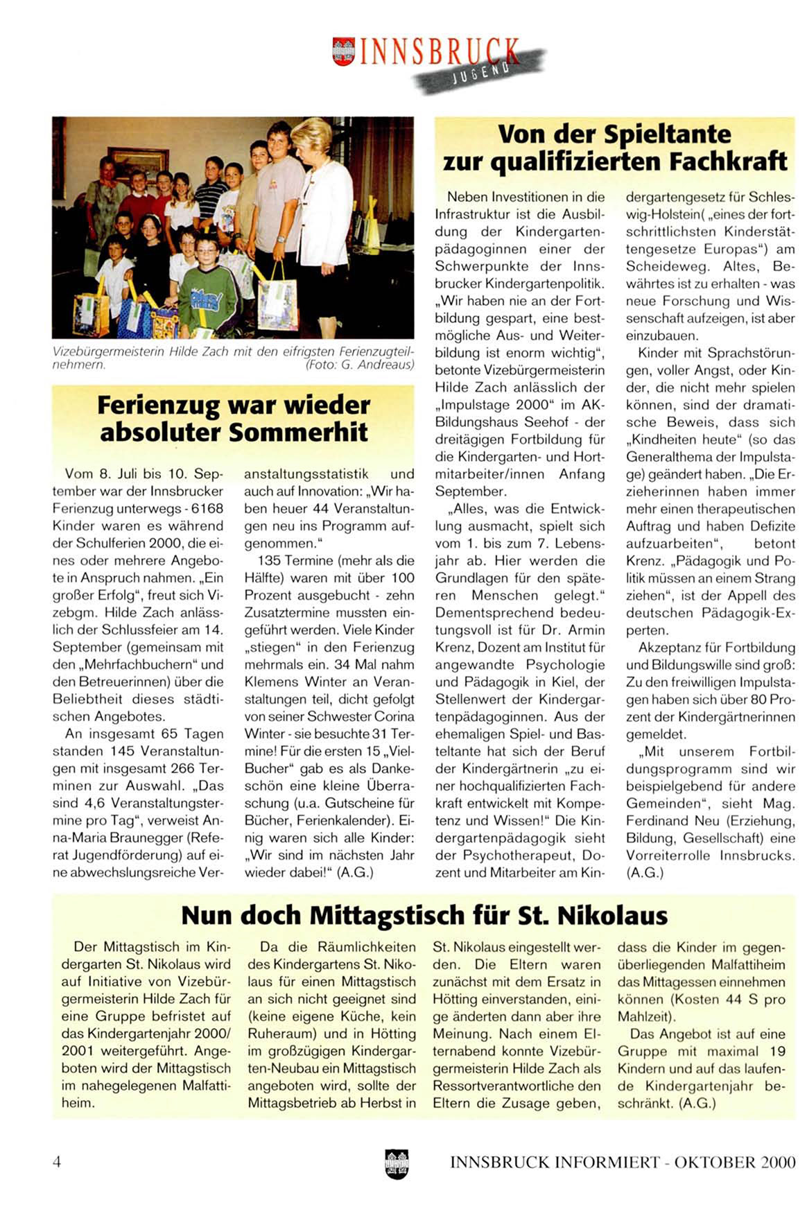 auf Initiative v o n Vizebürgermeisterin Hilde Z a c h für