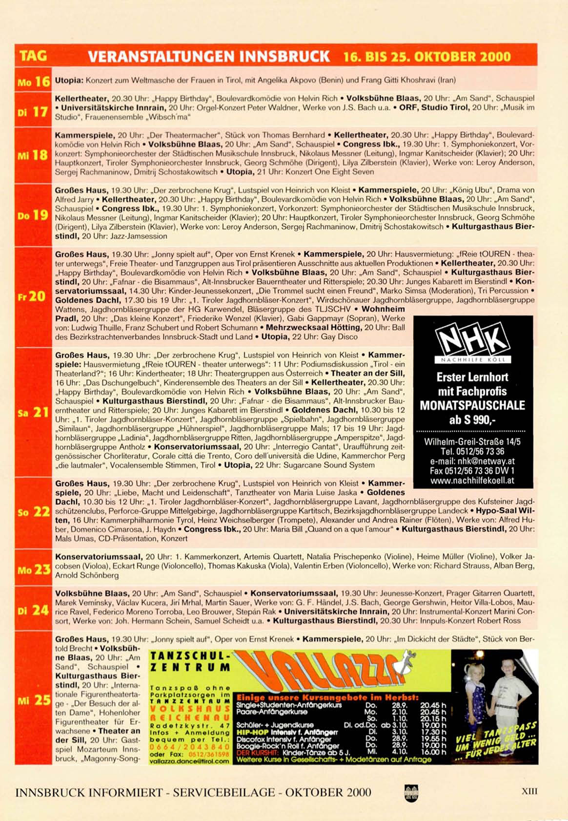 kon/ert: Symphi minor ehester de, " Itadtisi hen Musikschule Innsbi uek, Nikolaus, Messnei (I eitung), Im,mai Kanitsoheidei (Klavier); 20 Uhr: