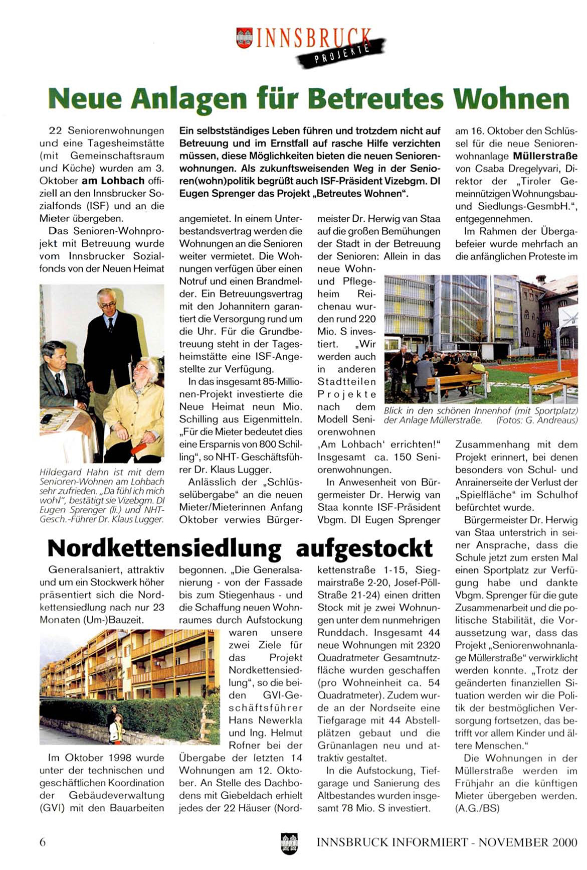 vom Innsbrucker Sozialfonds von der Neuen Heimat