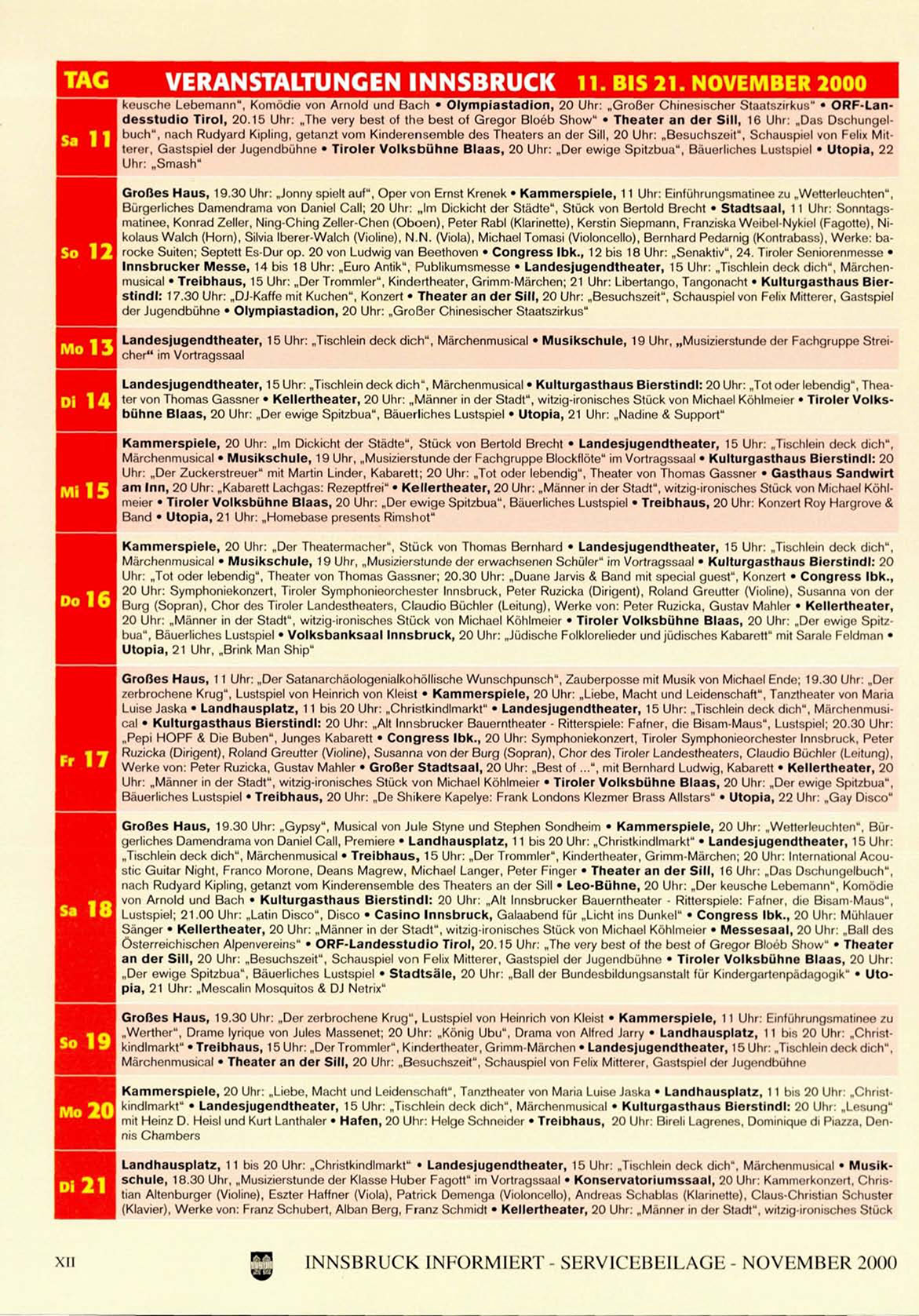VERANSTALTUNGEN INNSBRUCK 11. BIS 21. NOVEMBER 2000