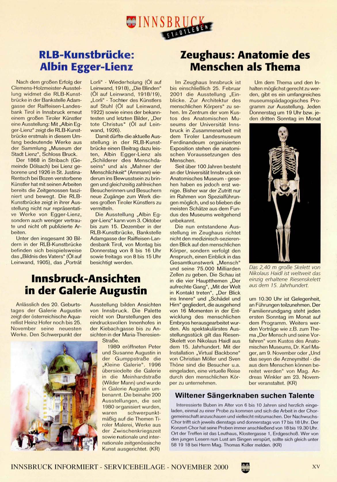 Anlässlich des 20. Geburtstages der Galerie Augustin