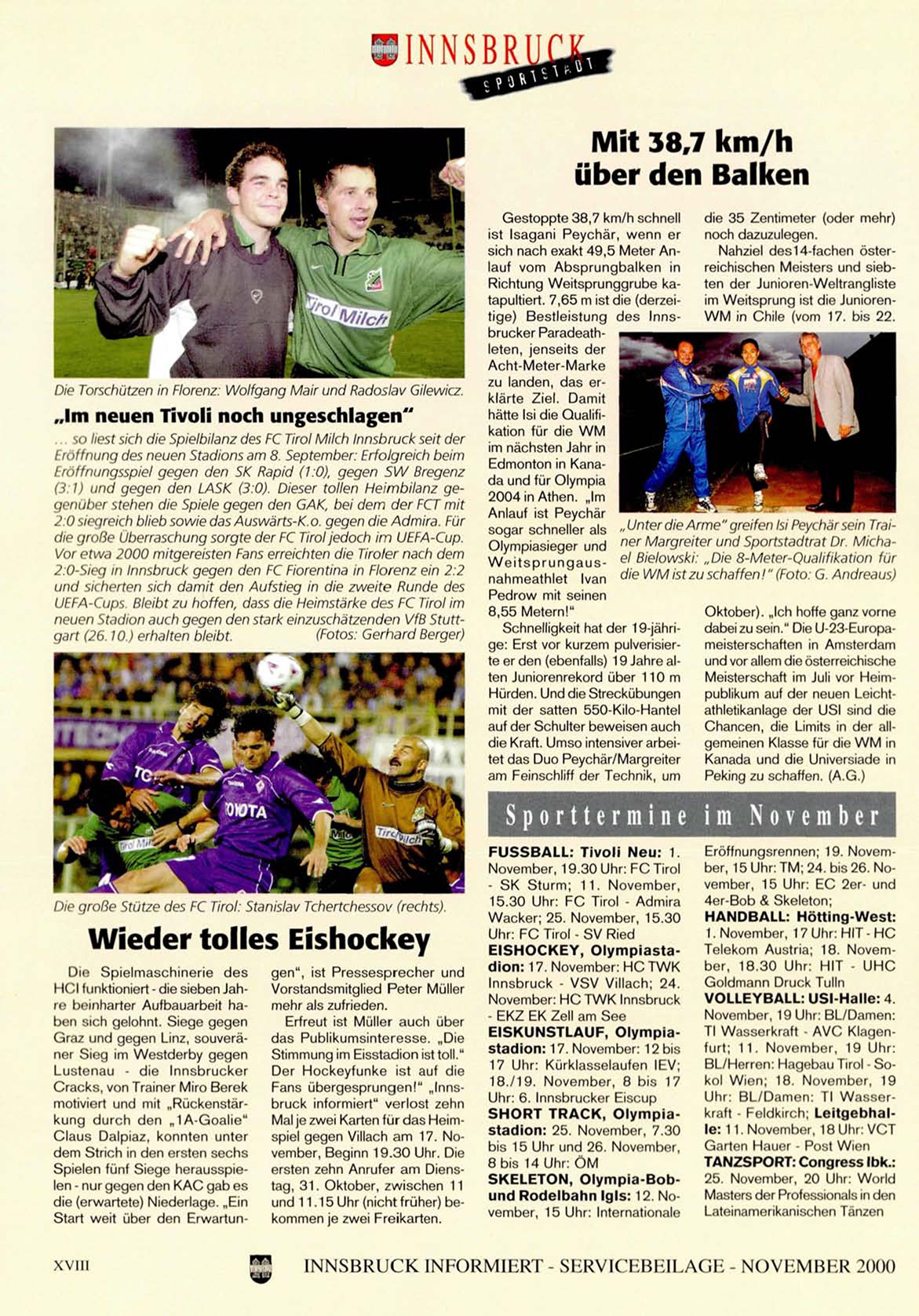 die große Überraschung sorgte der FC Tirol jedoch im UEFA-Cup.