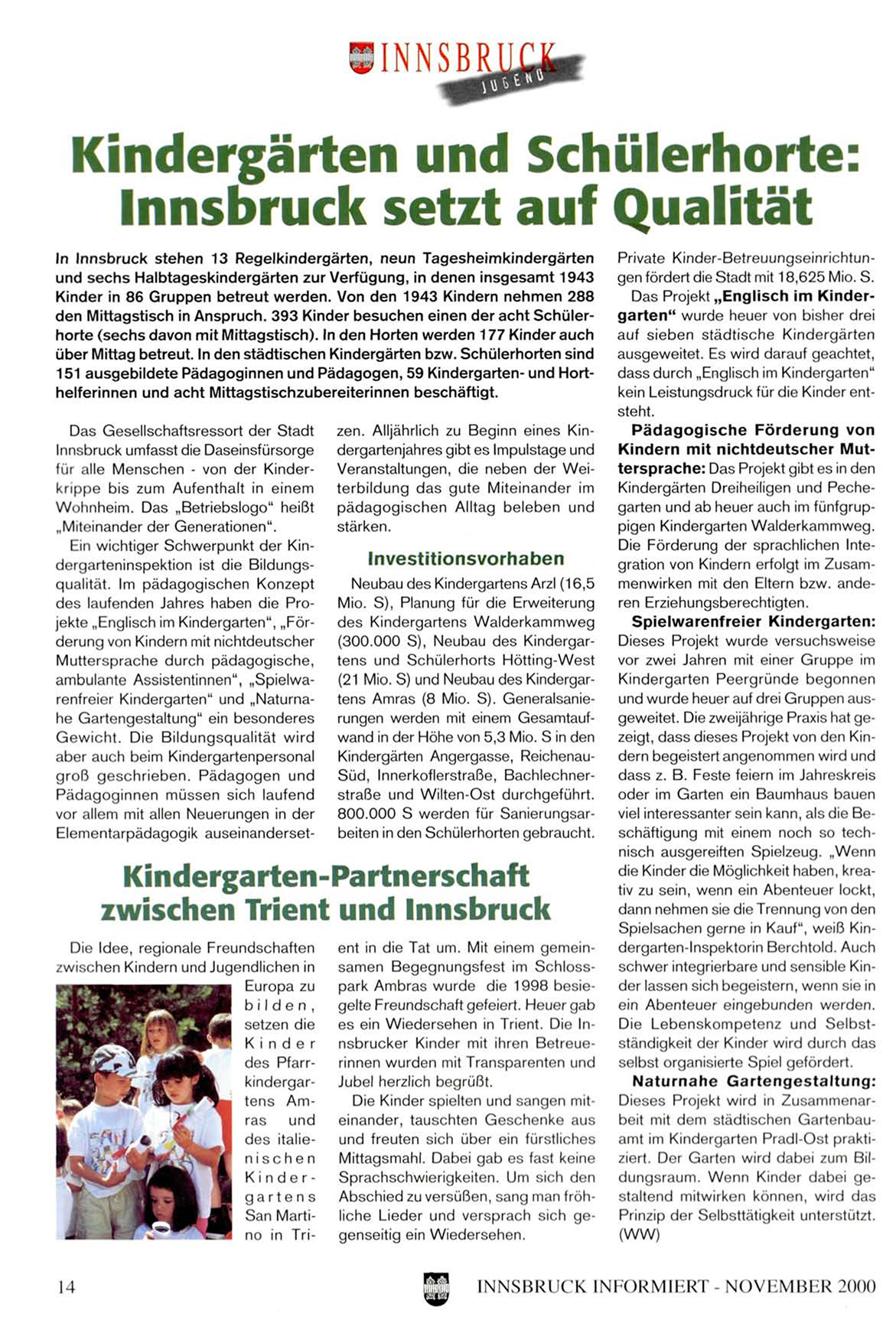 Kindergärten Angergasse, ReichenauSüd, Innerkoflerstraße, Bachlechnerstraße und Wilten-Ost durchgeführt.