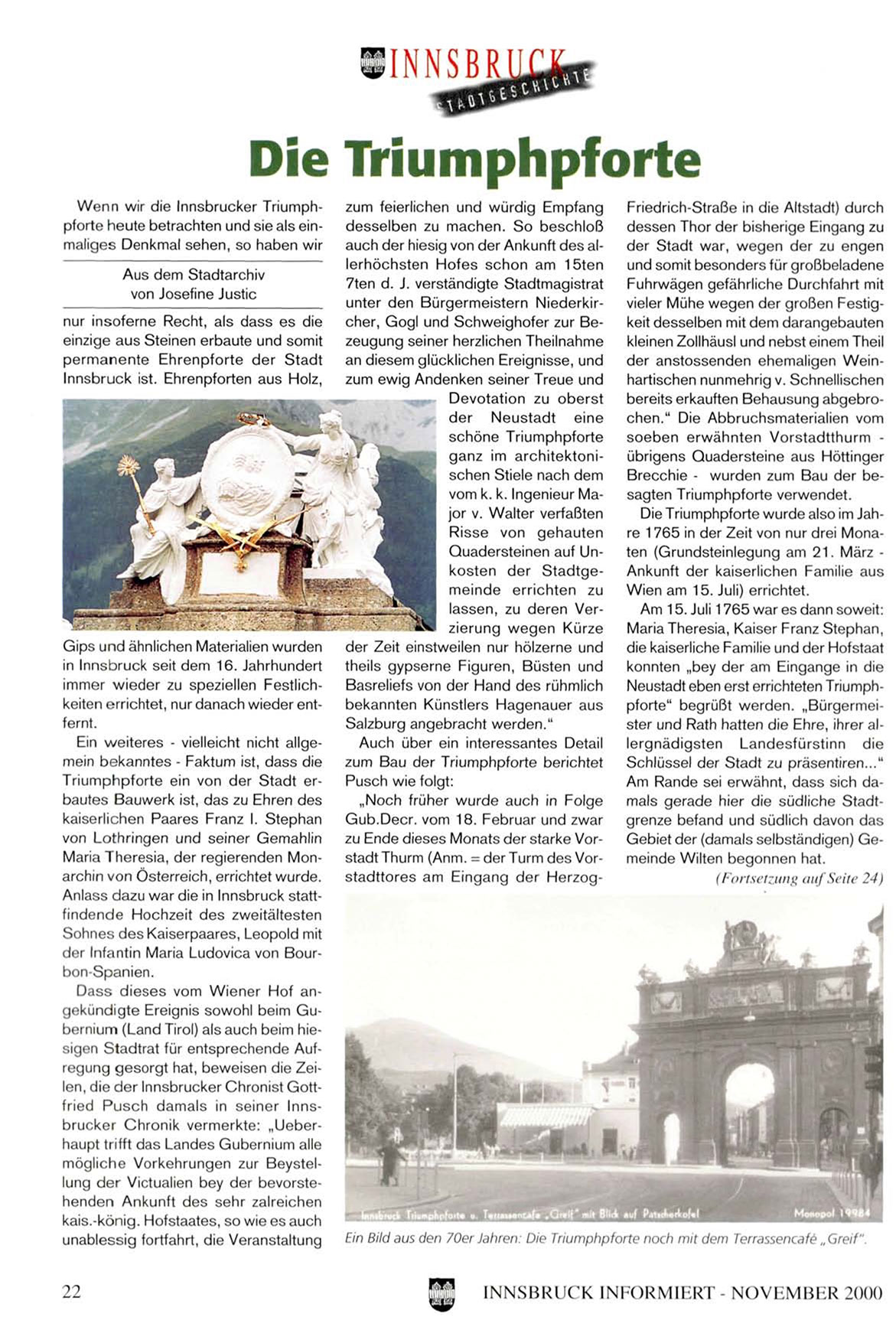 Wenn wir die Innsbrucker Triumphpforte heute betrachten und sie als einmaliges Denkmal sehen, so haben wir