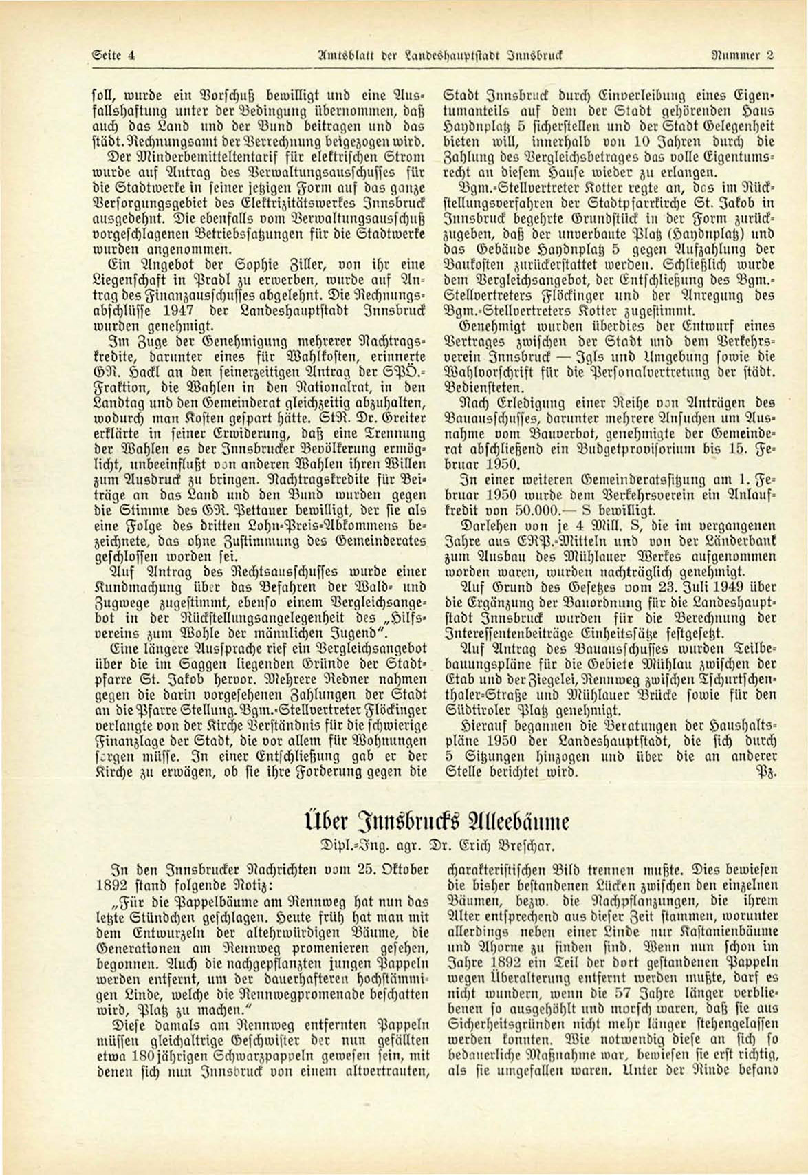 Liegenschaft in P r a d l zu erwerben, wurde auf A n trag des Finanzausschusses abgelehnt. Die Rechnungsabschlüsse 1947 der Landeshauptstadt Innsbruck