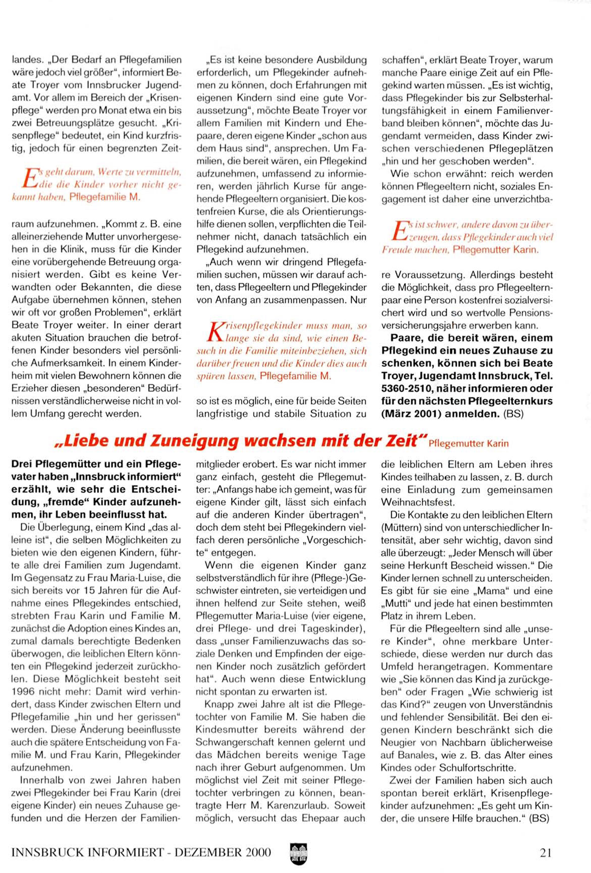 Drei P f l e g e m ü t t e r u n d ein Pflegevater haben „ I n n s b r u c k i n f o r m i e r t "
