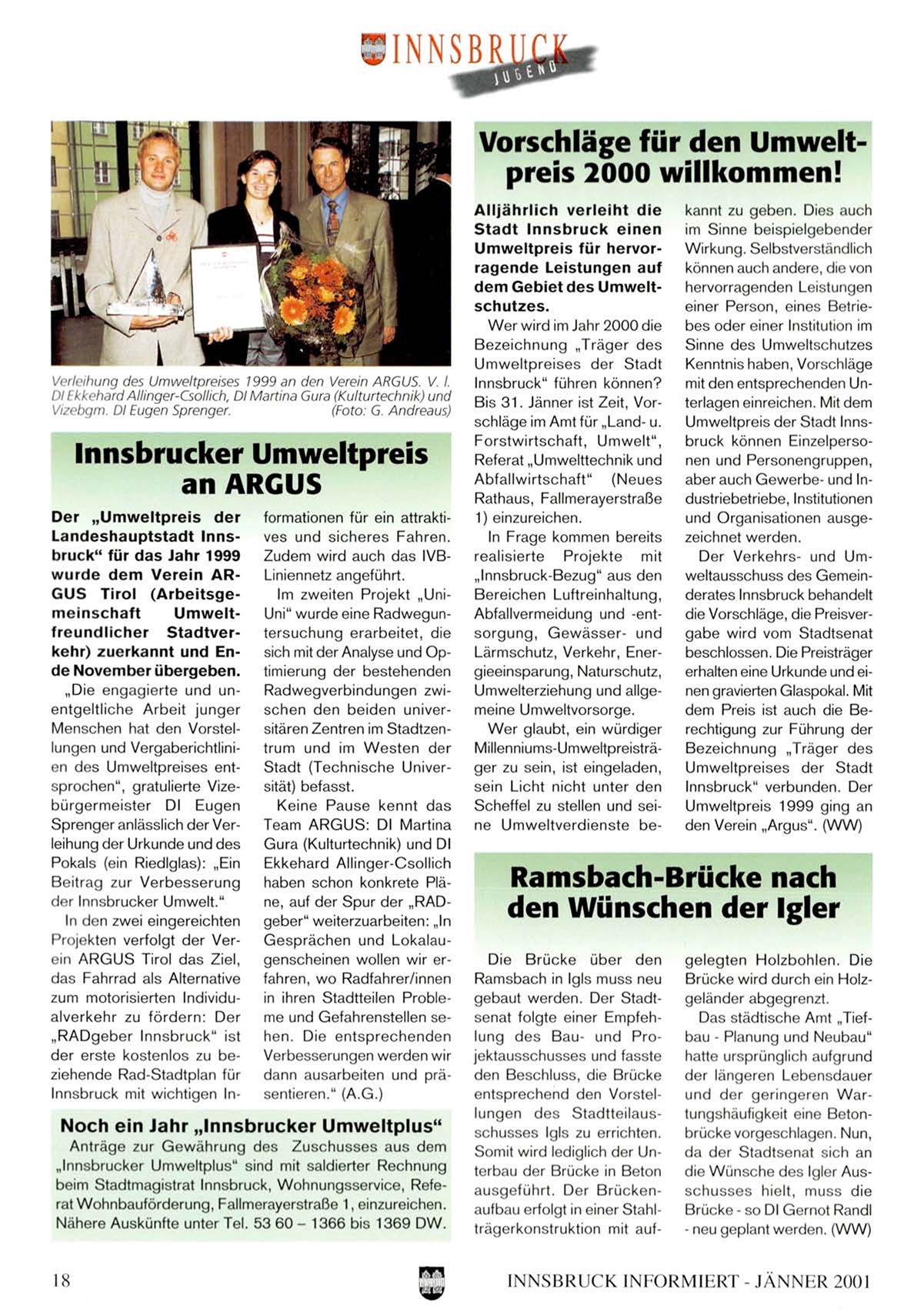 Verleihung des Umweltpreises 1999 an den Verein ARGUS. V. I.Innsbruck" führen können?