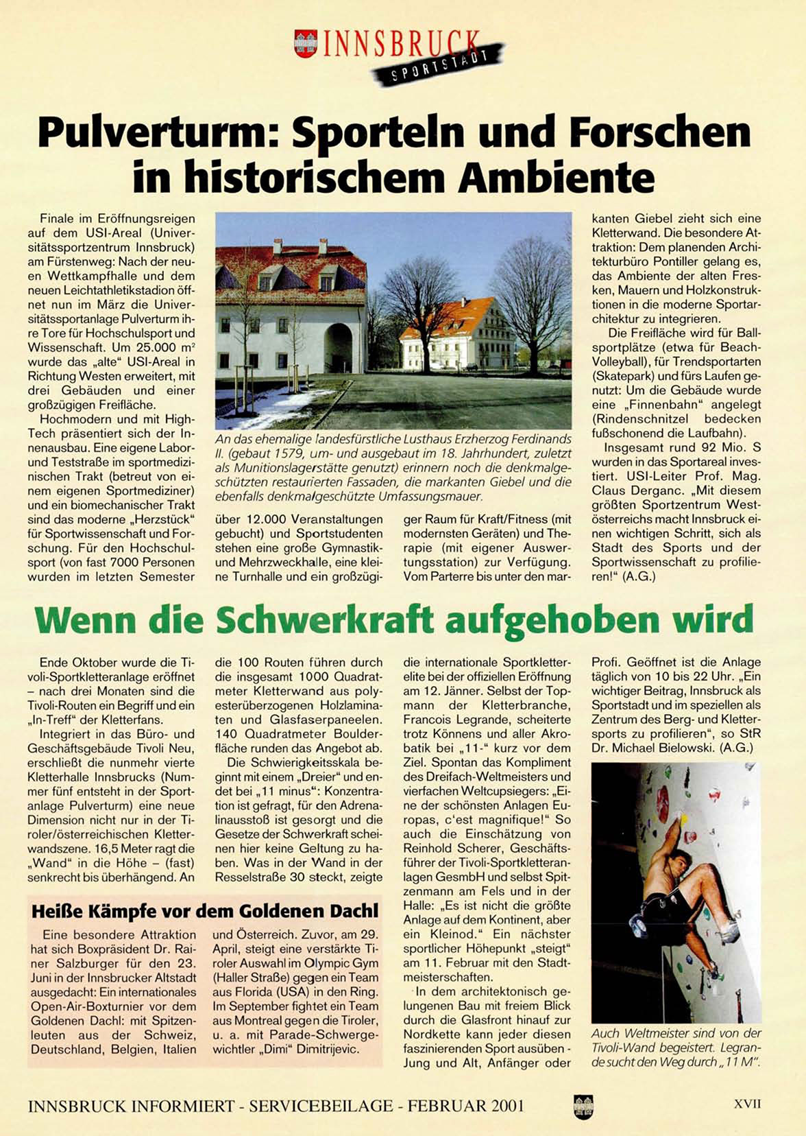 Kletterhalle Innsbrucks (Nummer fünf entsteht in der Sportanlage Pulverturm) eine neue