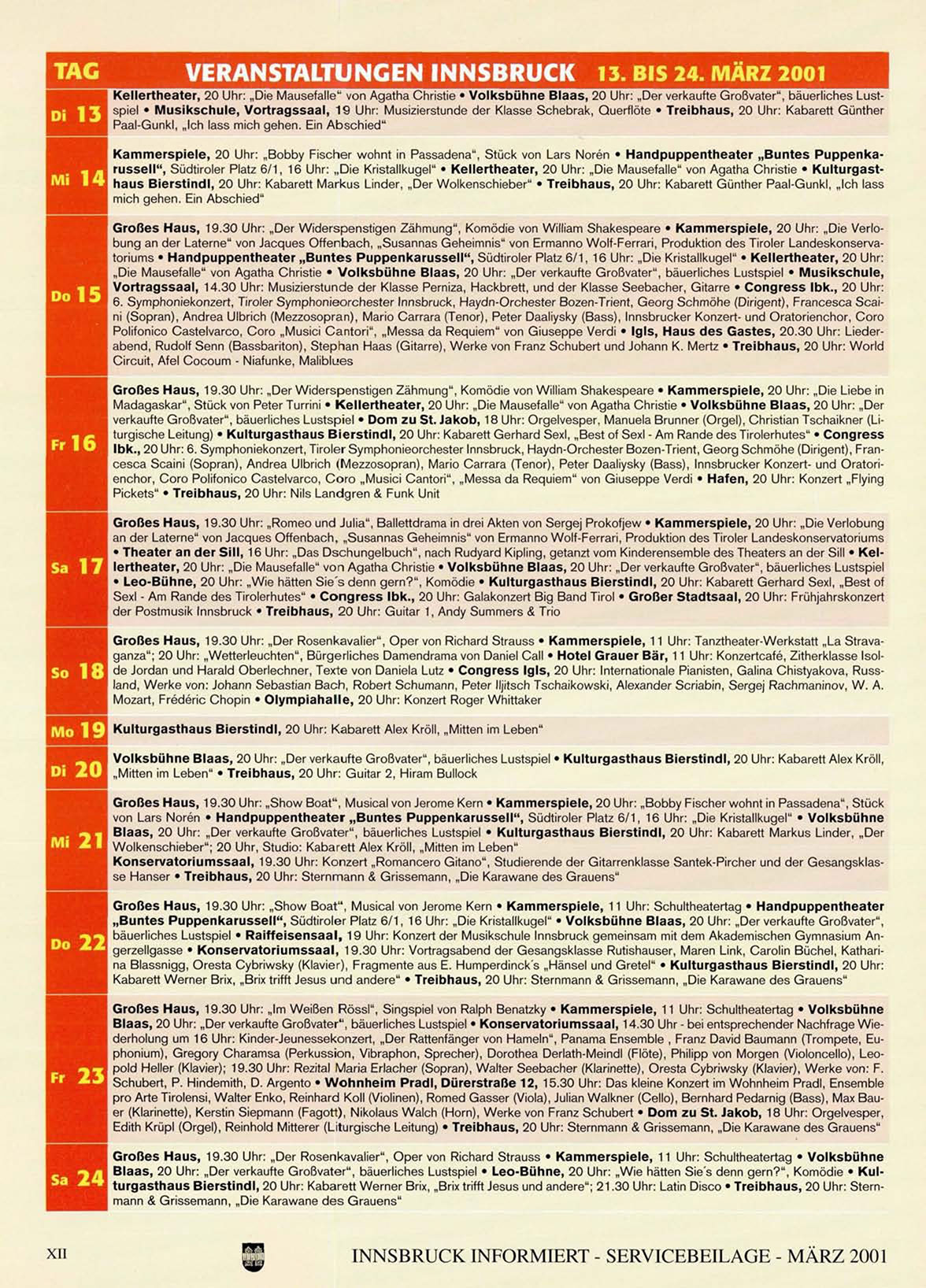 INNSBRUCK INFORMIERT - SERVICEBEILAGE - MÄRZ 2001