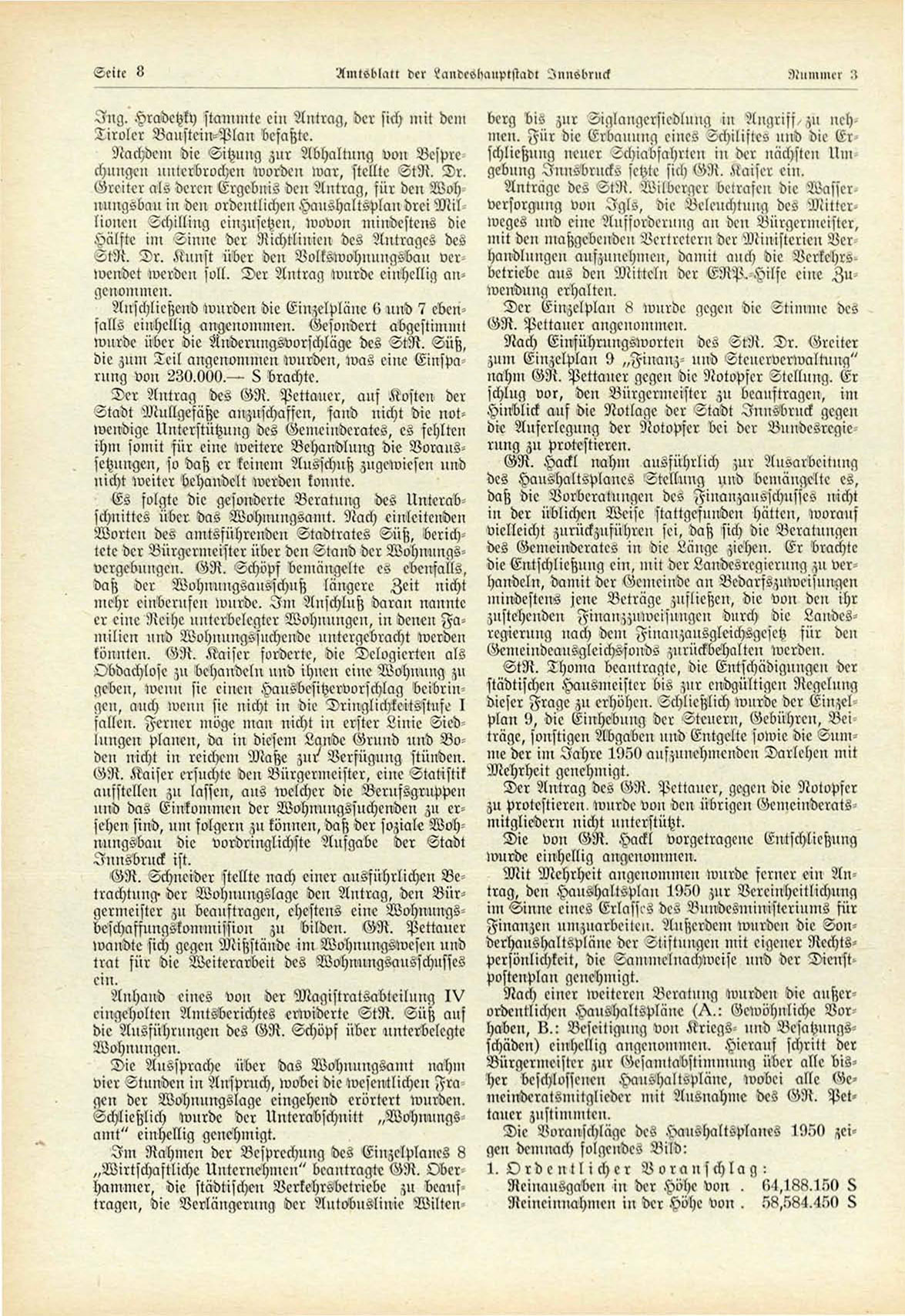 Worten des amtsführenden Stadtrates Süß, berichtete der Bürgermeister über den Stand der Wohnuugsvcrgebuugeu. GN. Schöpf bemängelte es ebenfalls,
