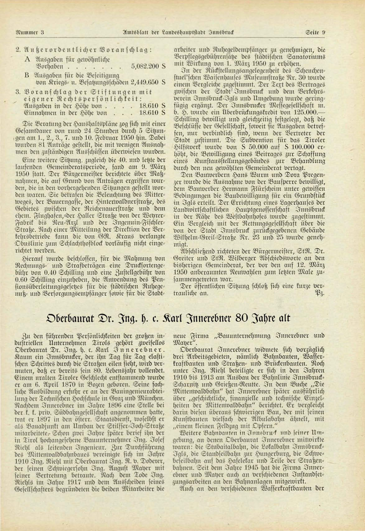 Oberbaurat Dr. Ing. h. c. Karl Innerebner 80 Jahre alt