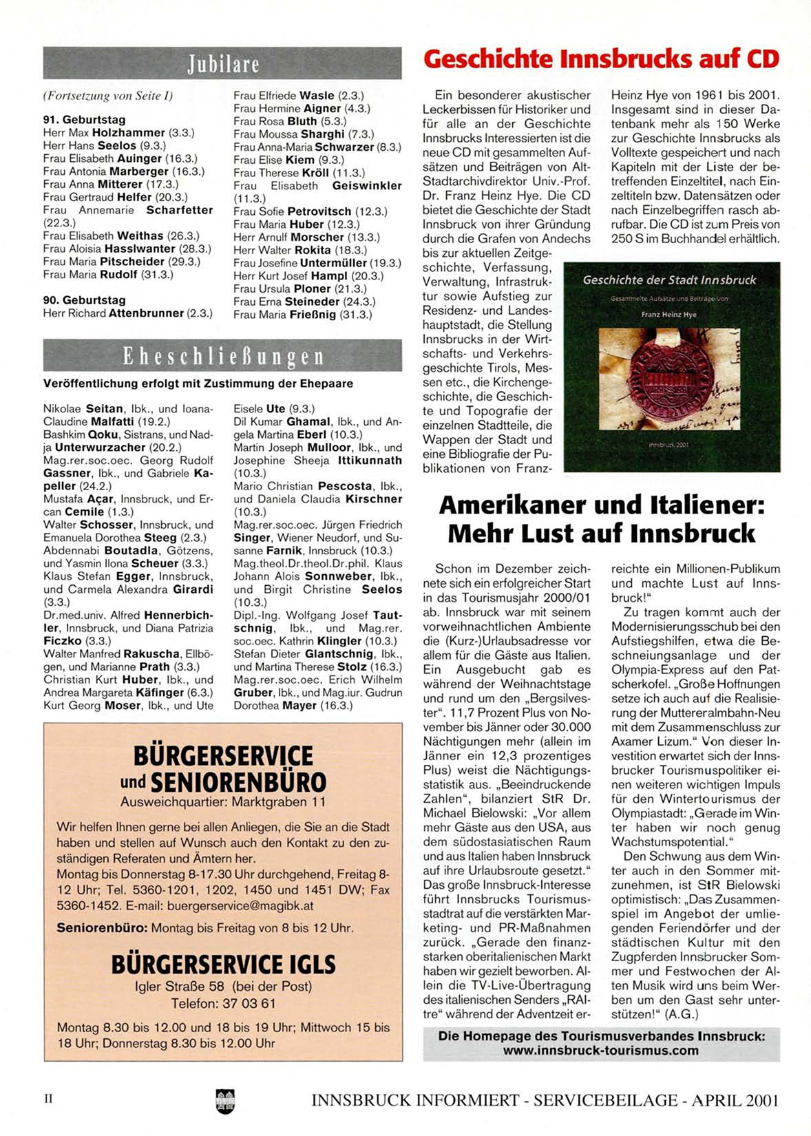 INNSBRUCK INFORMIERT - SERVICEBEILAGE - APRIL 2001