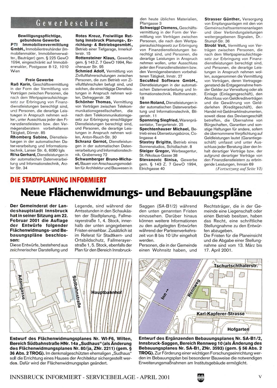 INNSBRUCK INFORMIERT - SERVICEBEILAGE - APRIL 2001
