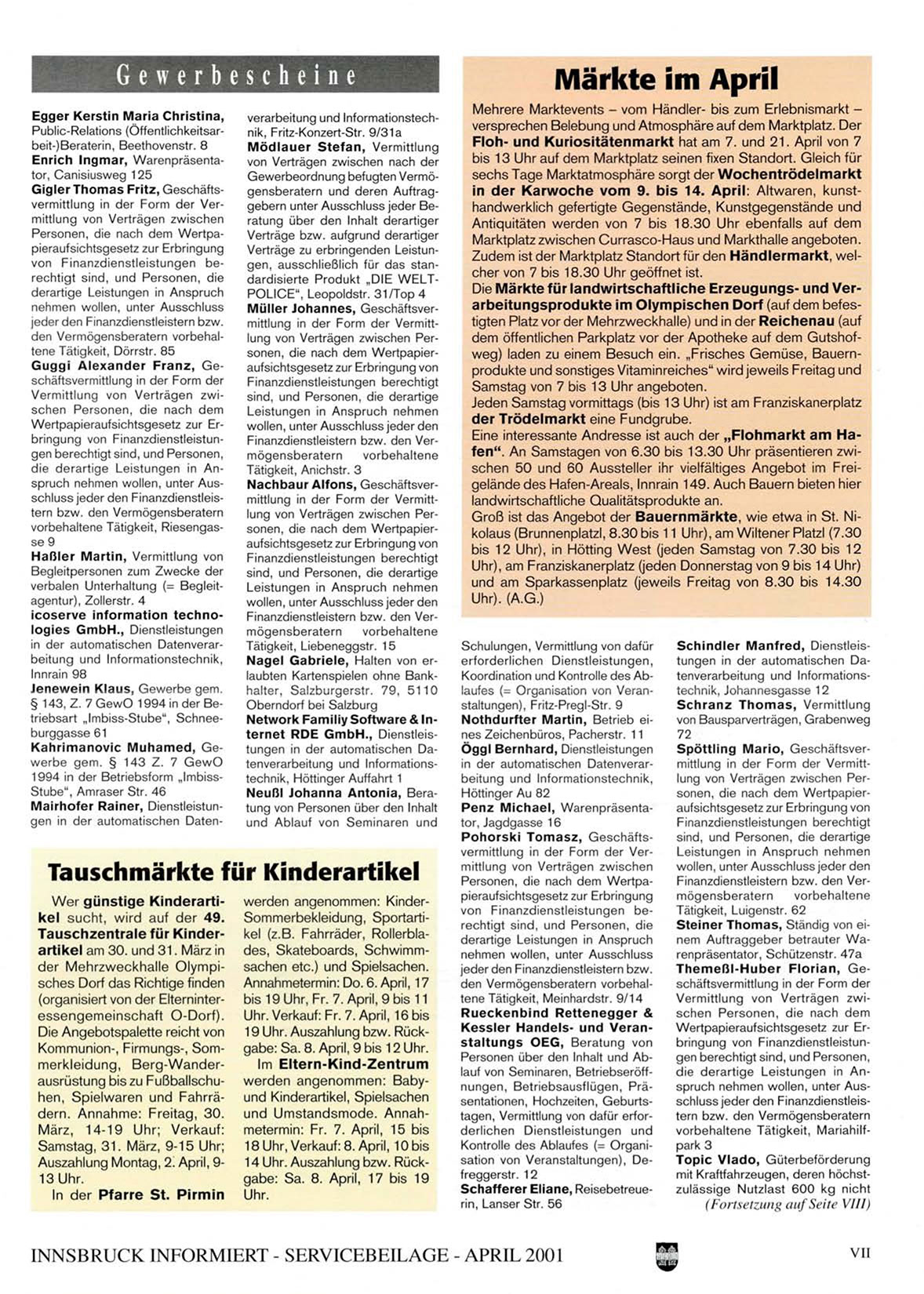 INNSBRUCK INFORMIERT - SERVICEBEILAGE - APRIL 2001