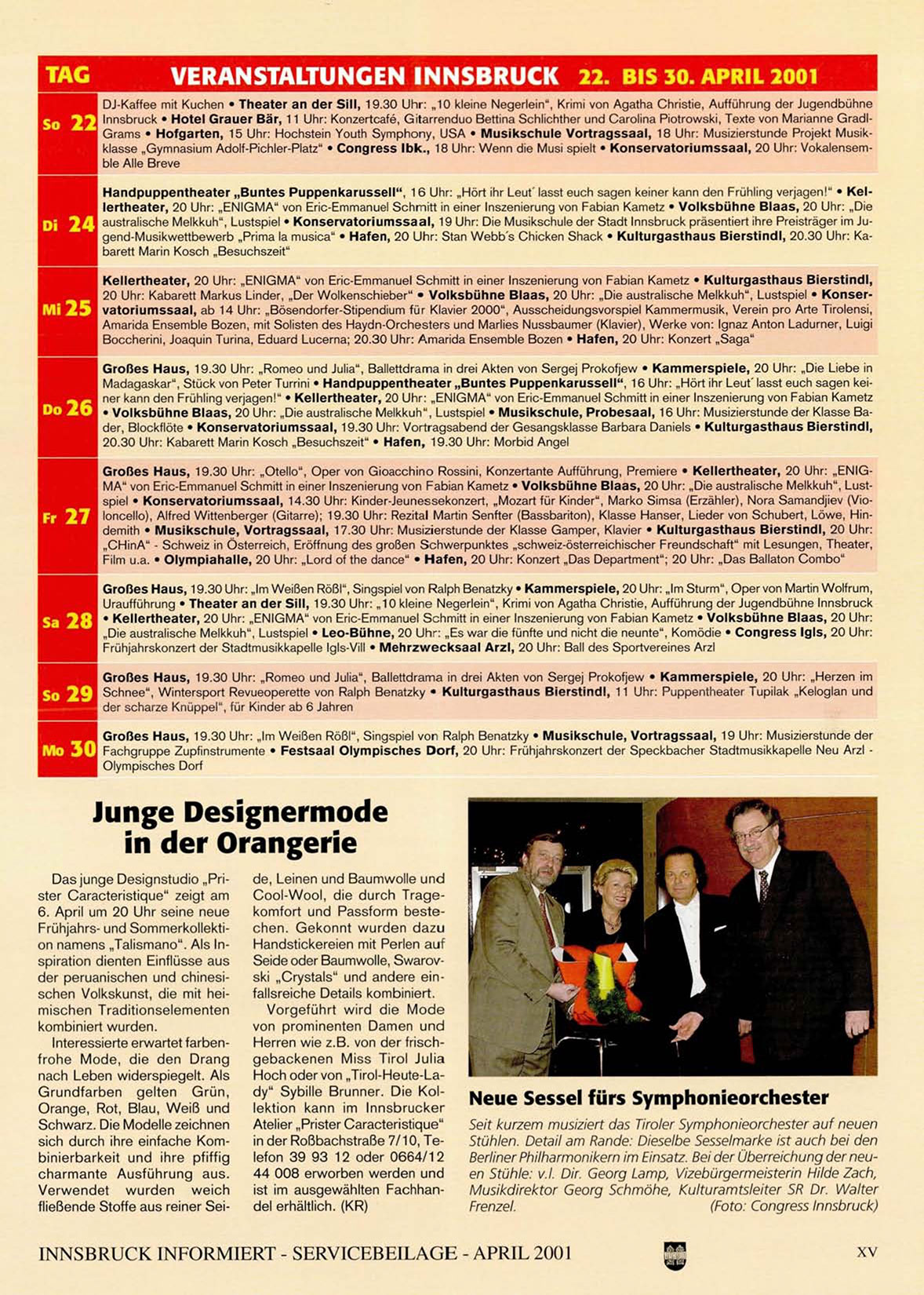 INNSBRUCK INFORMIERT - SERVICEBEILAGE - APRIL 2001