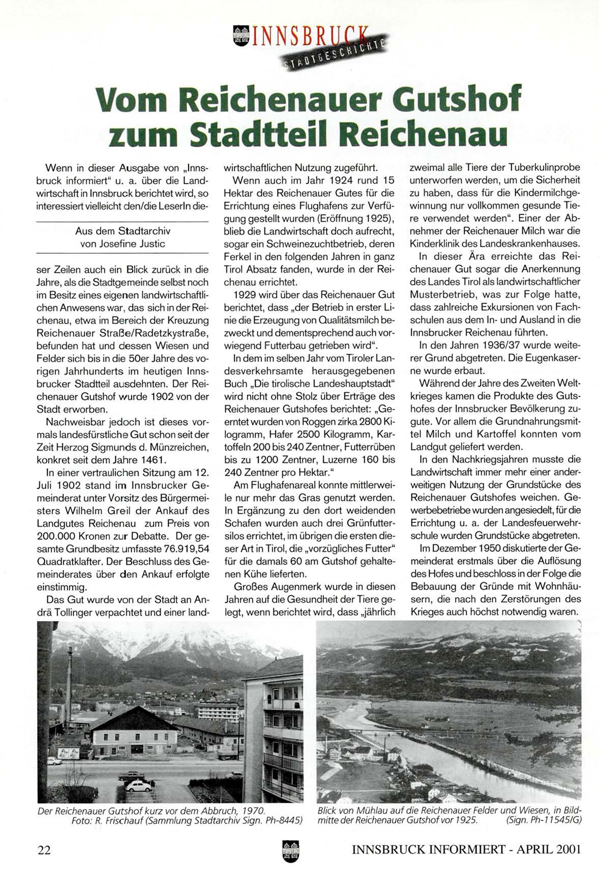 Felder sich bis in die 50er Jahre des vorigen Jahrhunderts im heutigen Innsbrucker Stadtteil ausdehnten. Der Reichenauer Gutshof wurde 1902 von der