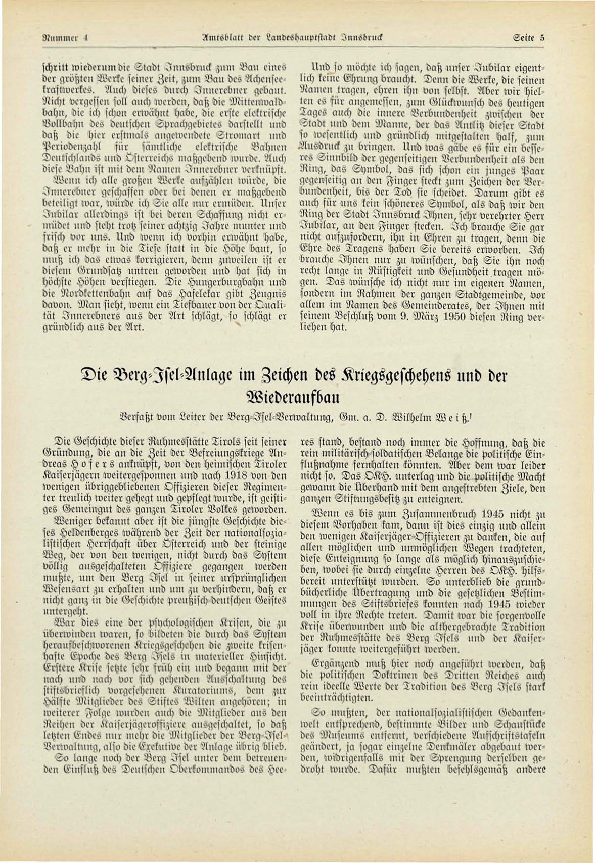 Verfaßt vom weiter der Perg-Isel-Verwaltnng, ^ m . a. D. Wilhelm W e i ß."