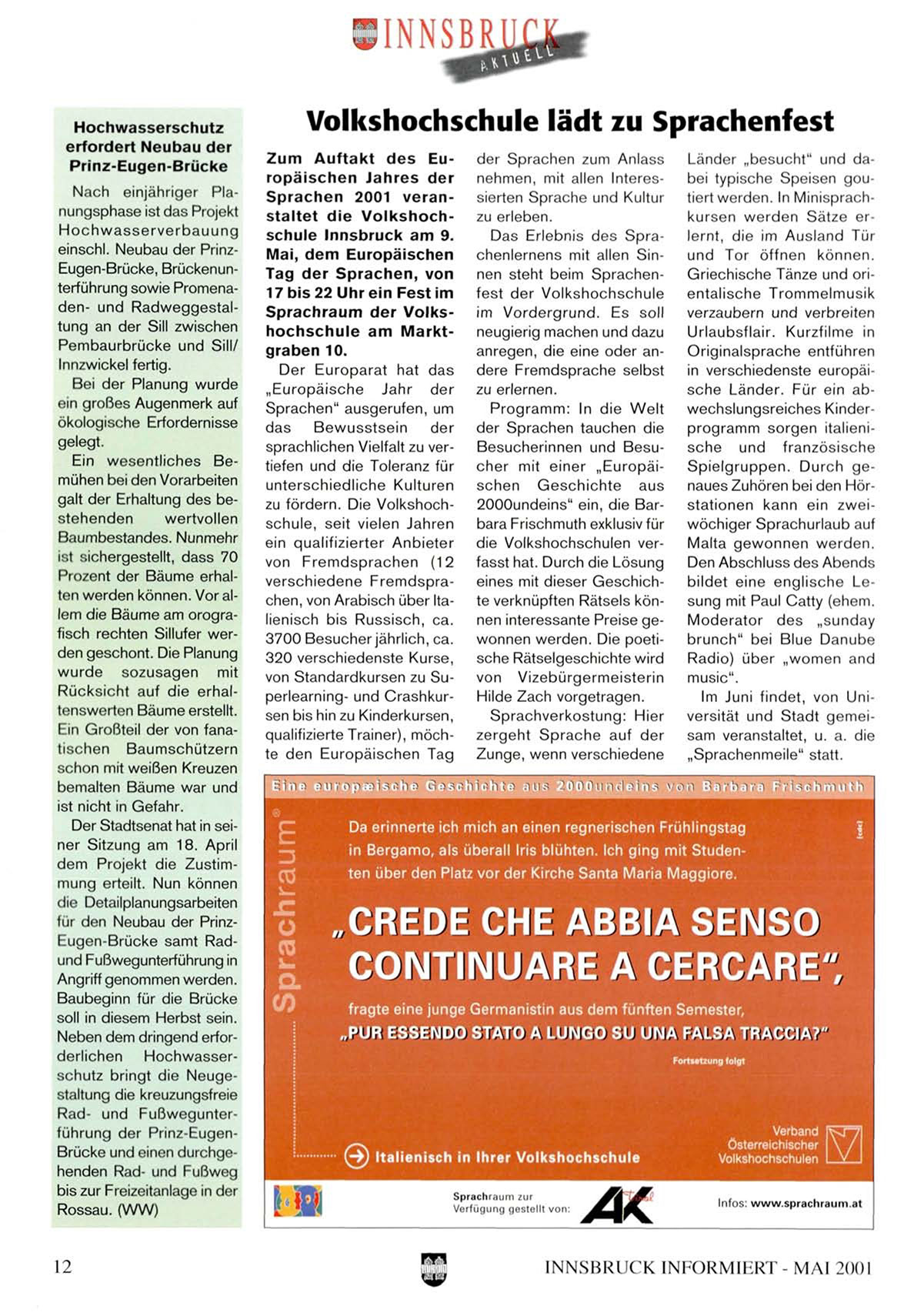 S p r a c h e n 2001 v e r a n staltet die V o l k s h o c h s c h u l e I n n s b r u c k a m 9.