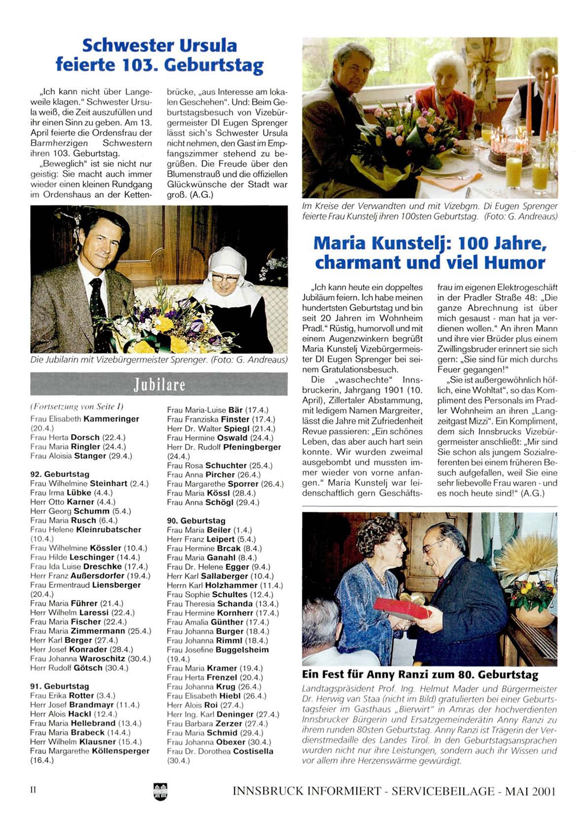 brücke, „aus Interesse am lokalen G e s c h e h e n " . U n d : Beim G e b u r t s t a g s b e s u c h von Vizebürgermeister DI Eugen S p r e n g e r