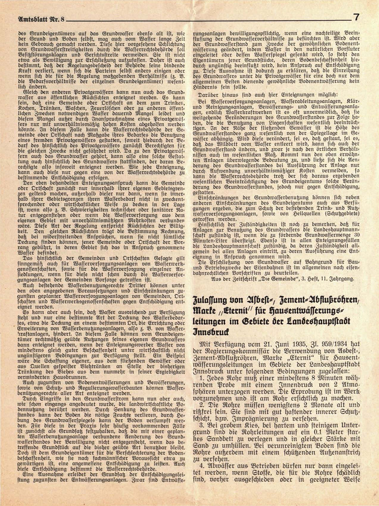 Zement-Abflußröhren, Marke „Eternit" für Hausentwässerungsleitungen im Gebiete der Landeshauptstadt